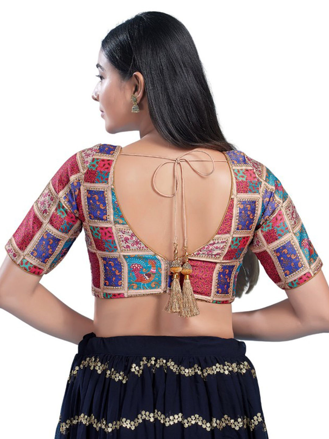 Velvet Party Wear Blouse in Multicolor with Printed work