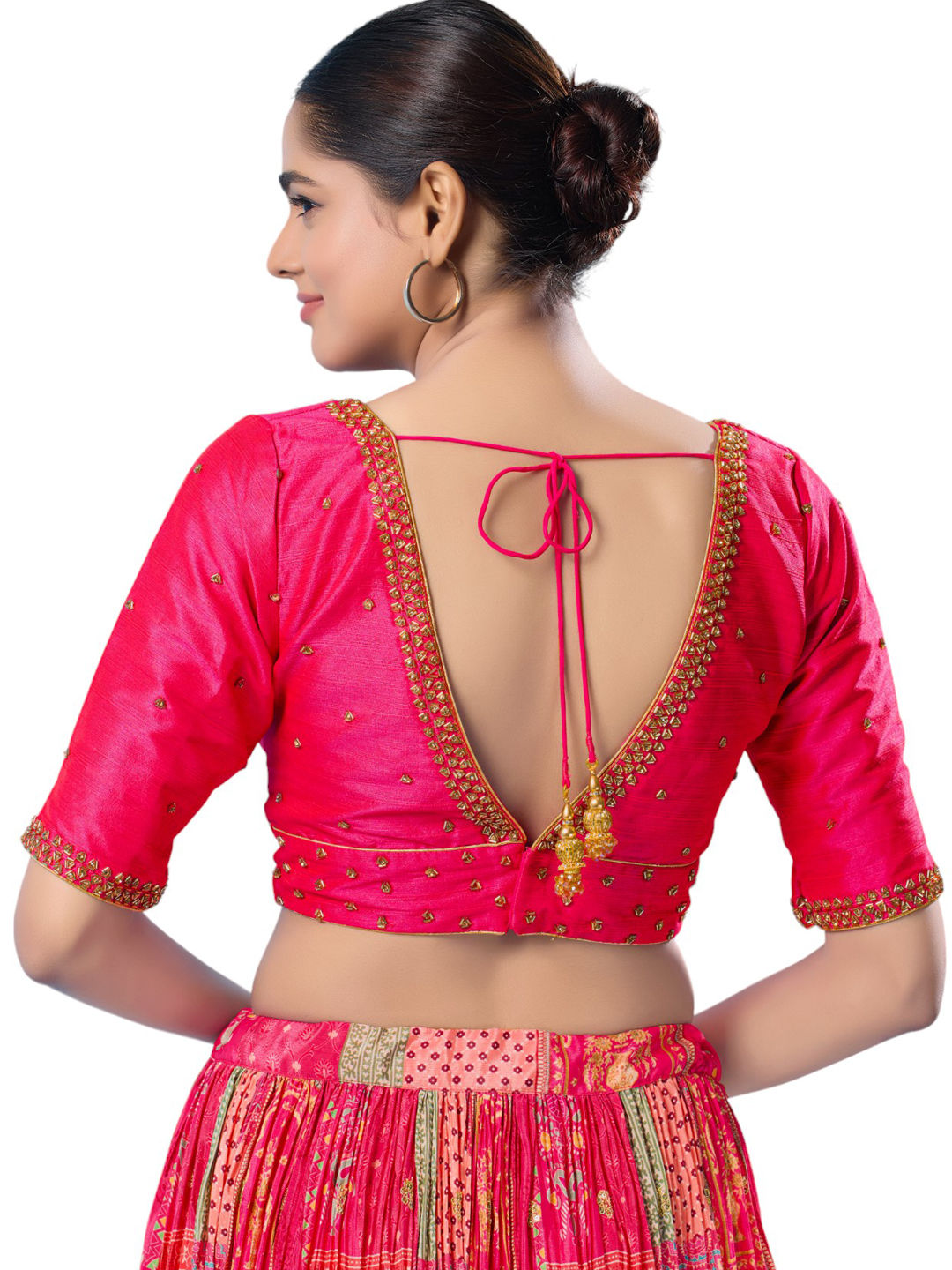 Pink and Majenta color Blouse in Silk fabric with Cut Dana work