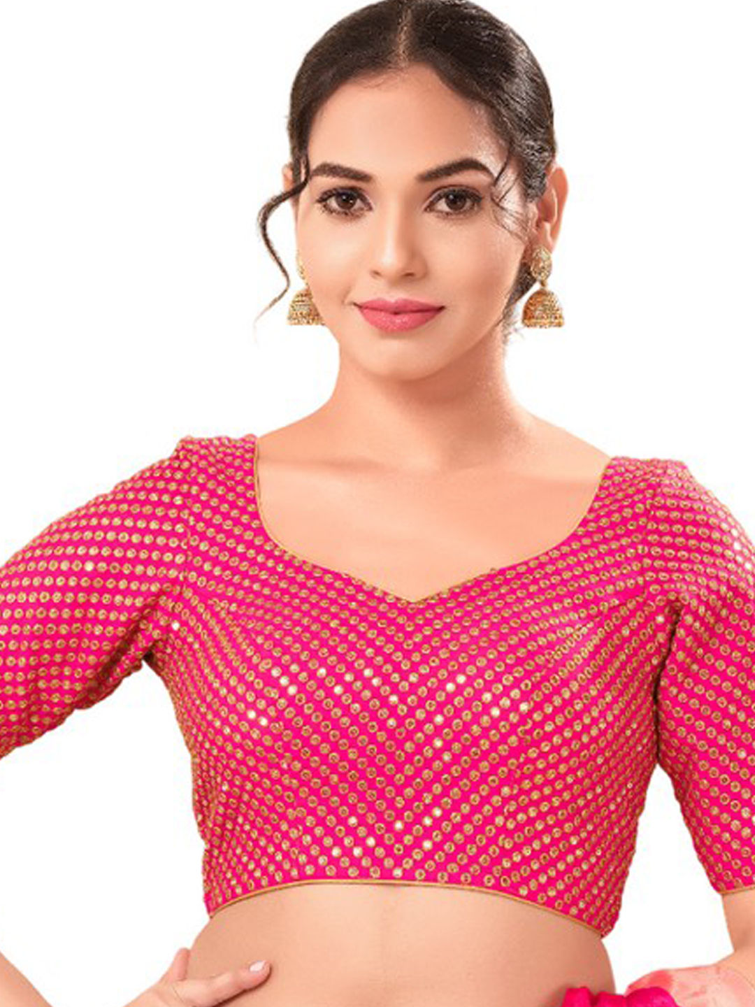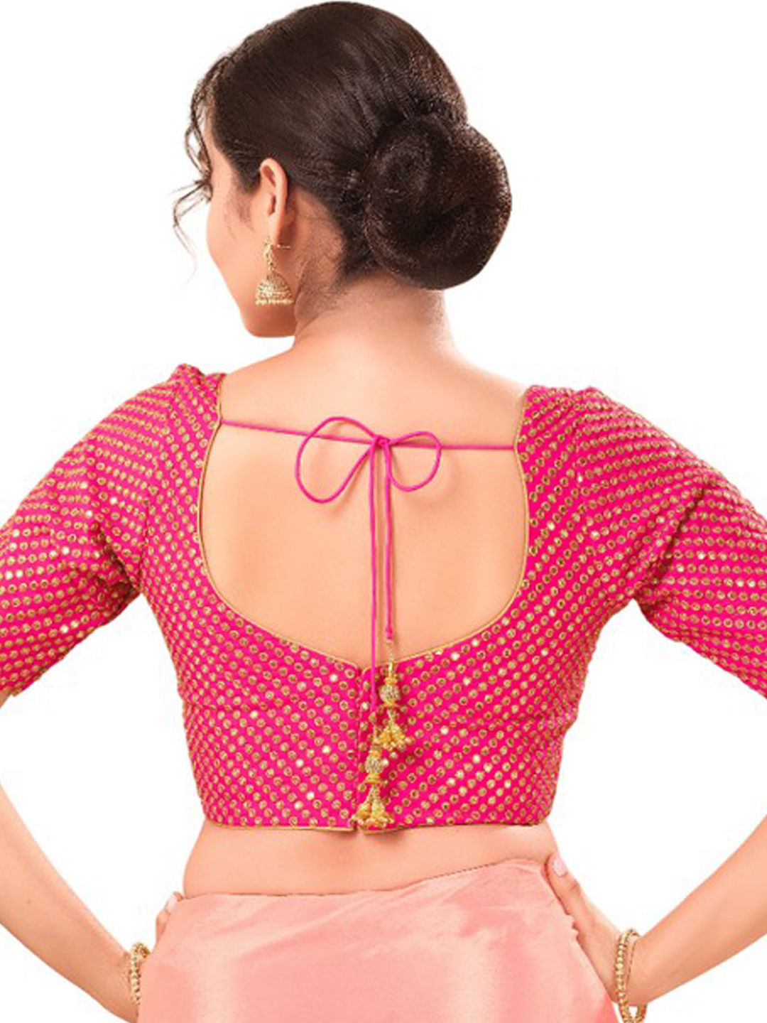 Pink and Majenta color Blouse in Silk fabric with Sequence work