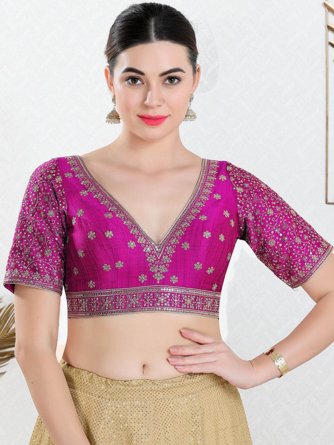 Purple and Violet color Blouse in Silk fabric with Embroidered, Thread, Zari work