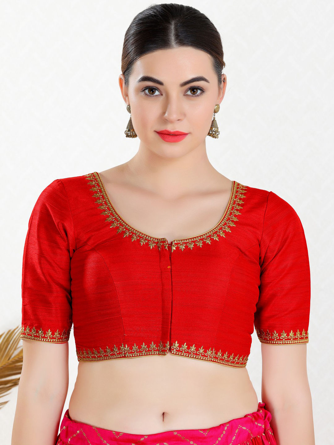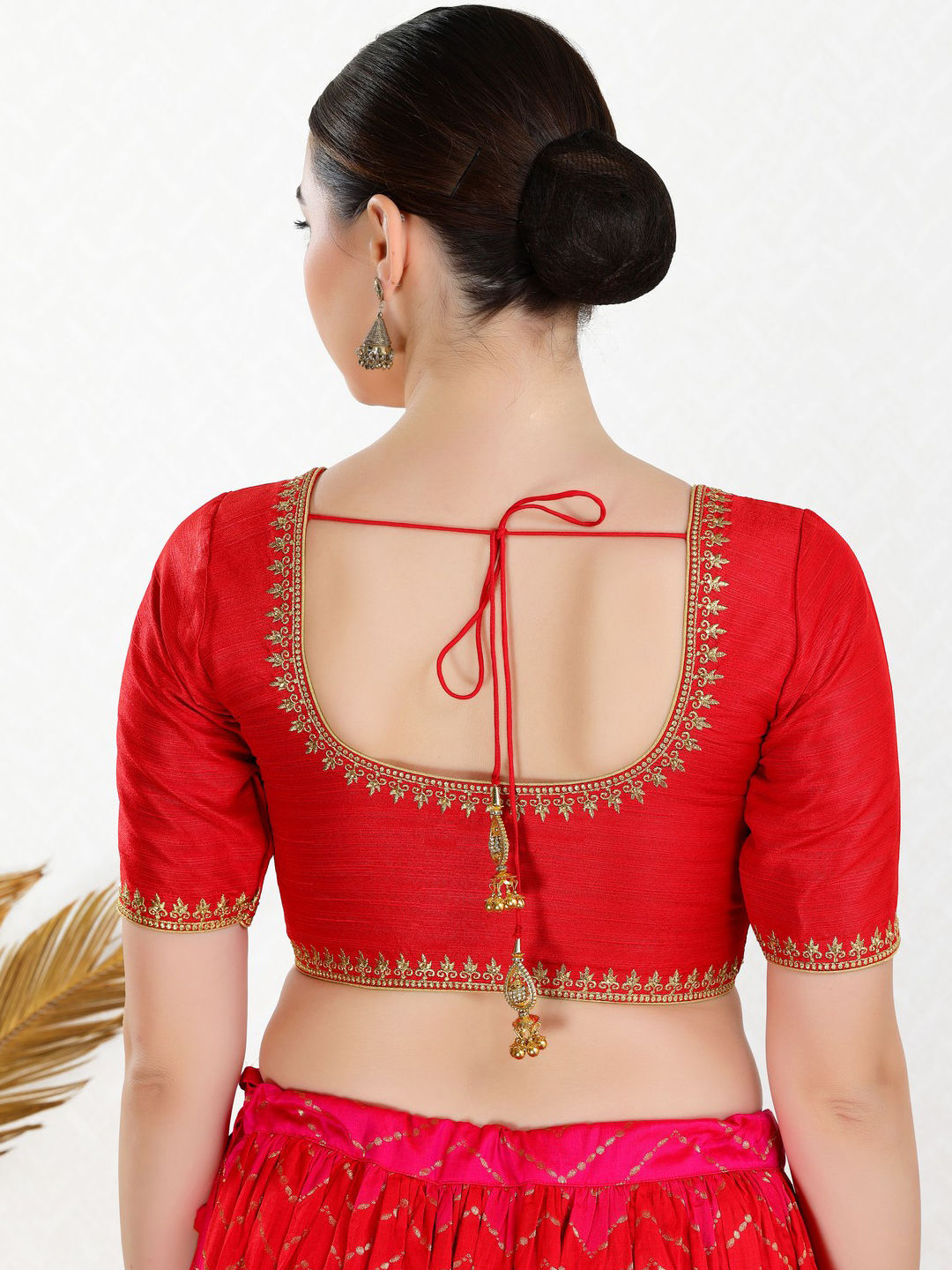 Red and Maroon color Blouse in Silk fabric with Embroidered, Thread, Zari work