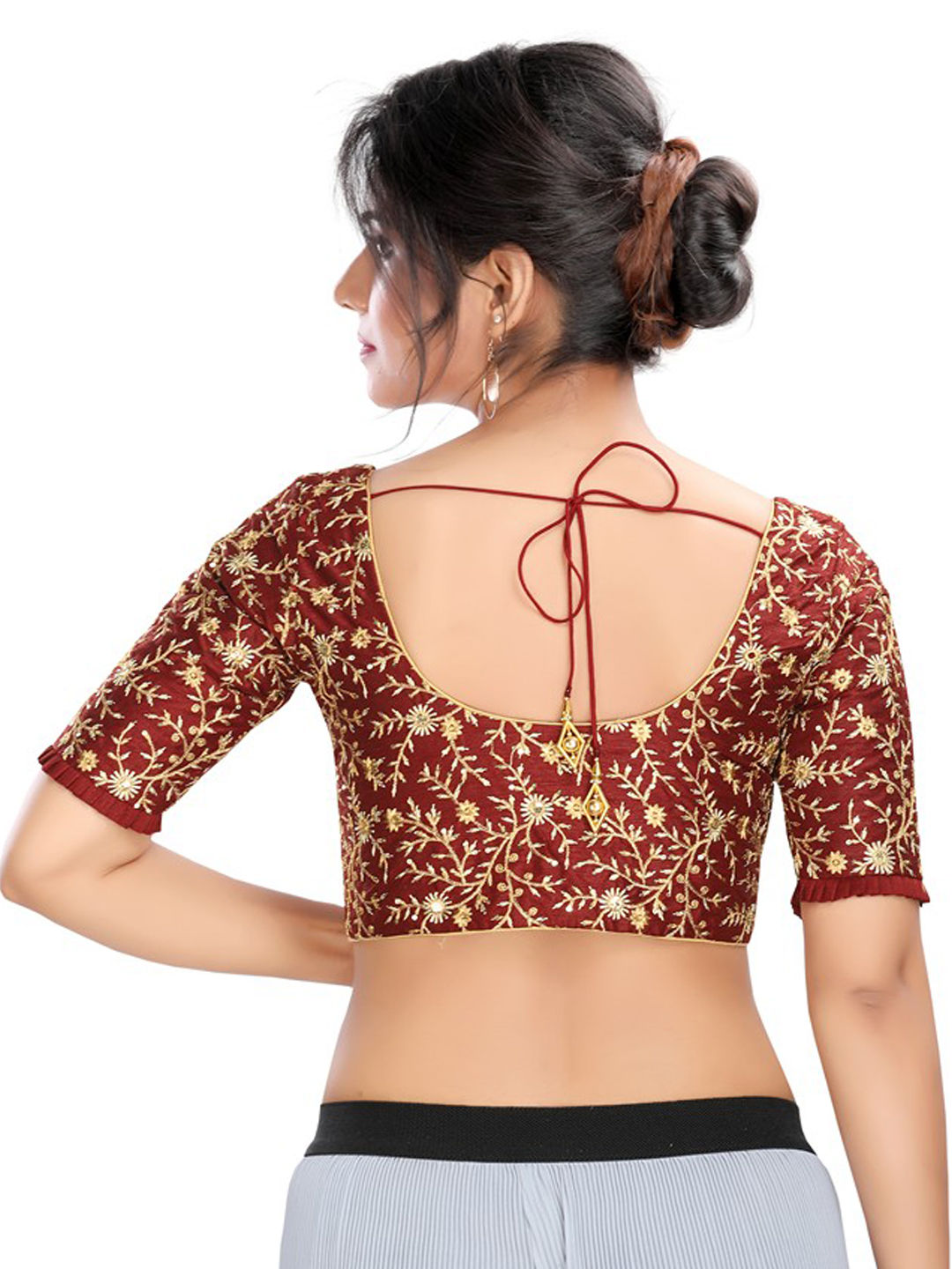 Red and Maroon color Blouse in Silk fabric with Embroidered, Sequence, Thread work