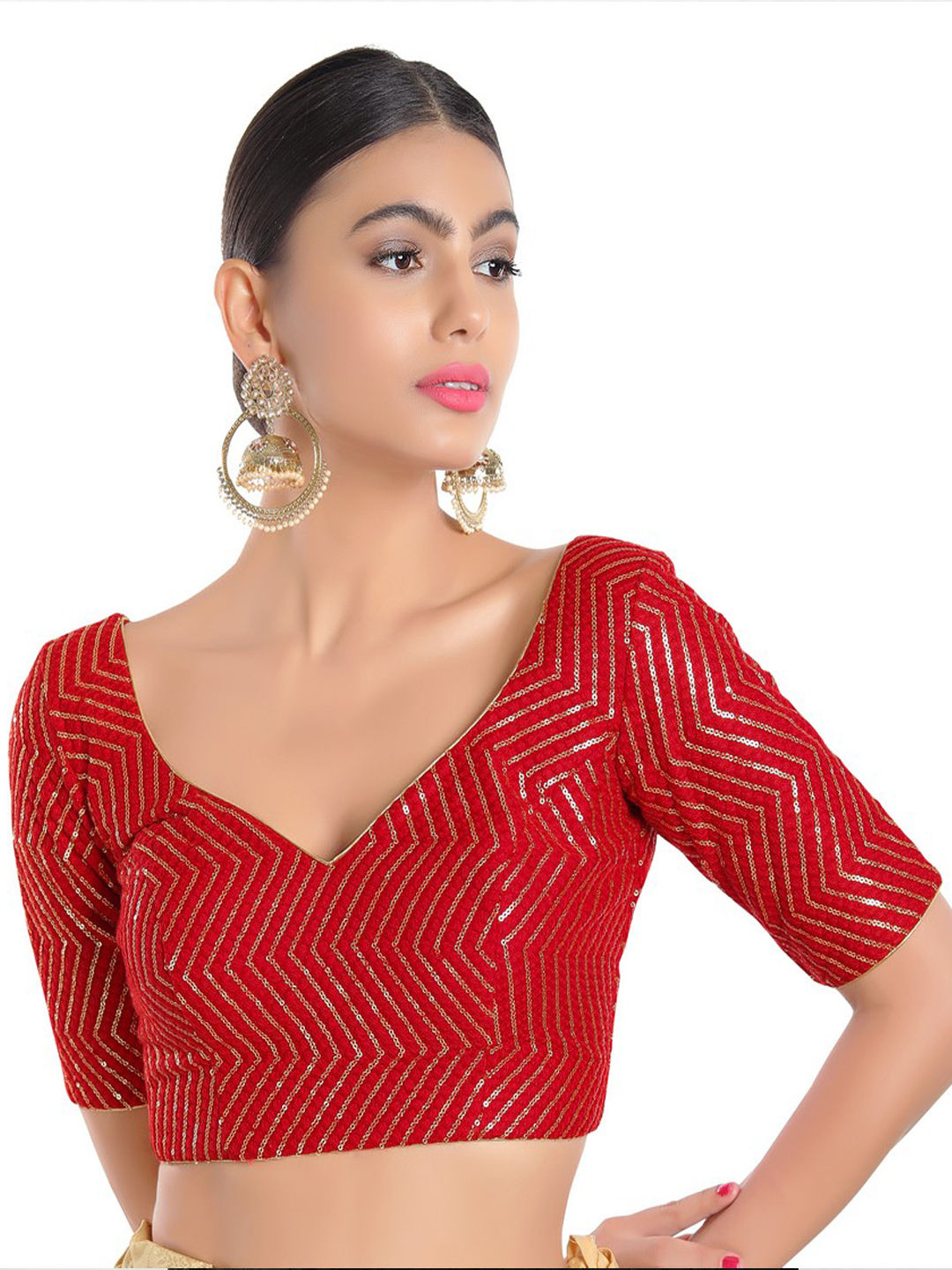 Red and Maroon color Blouse in Silk fabric with Sequence work