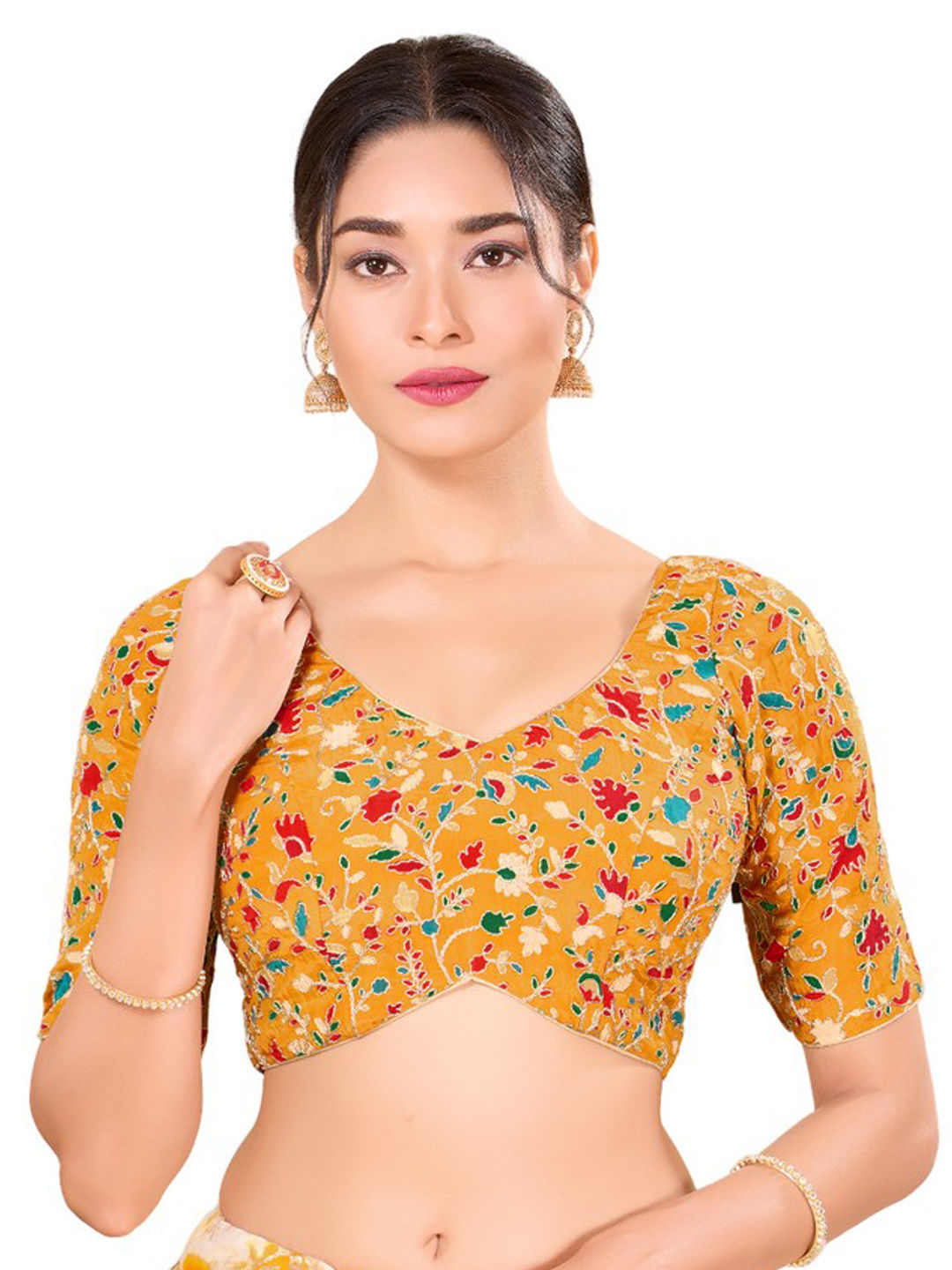 Yellow color Blouse in Silk fabric with Embroidered, Thread work