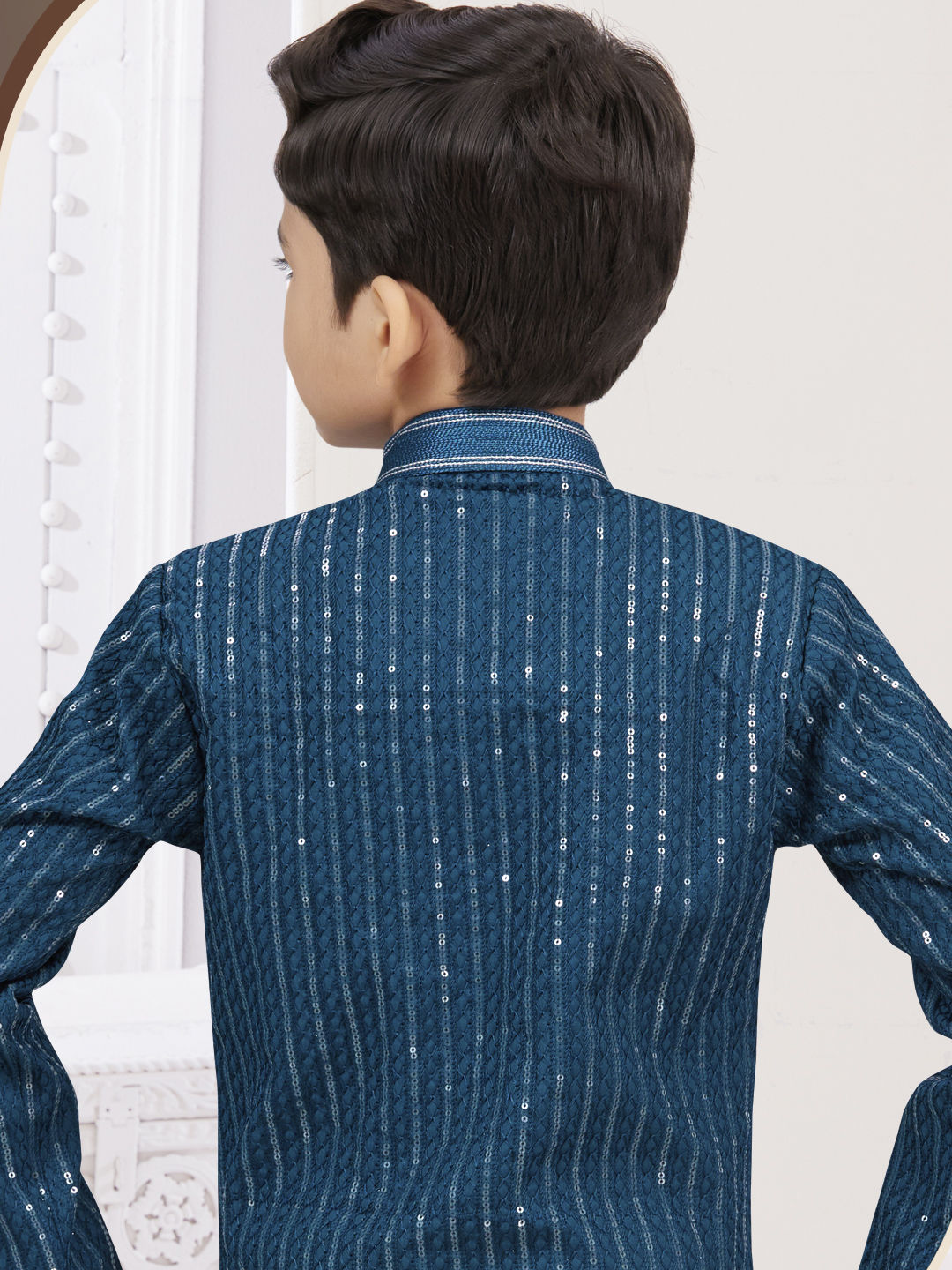 Silk Party Wear Boys Dhoti Sherwani in Blue with Stone work