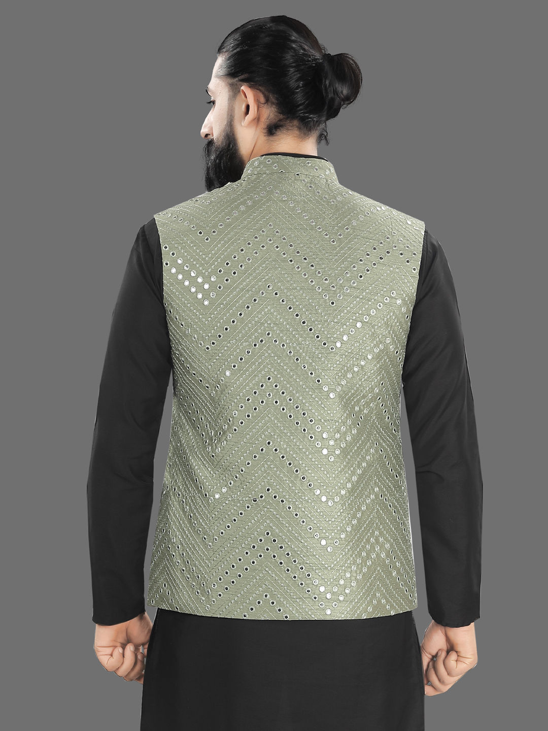 Green color Nehru Jacket in Silk fabric with Embroidered work