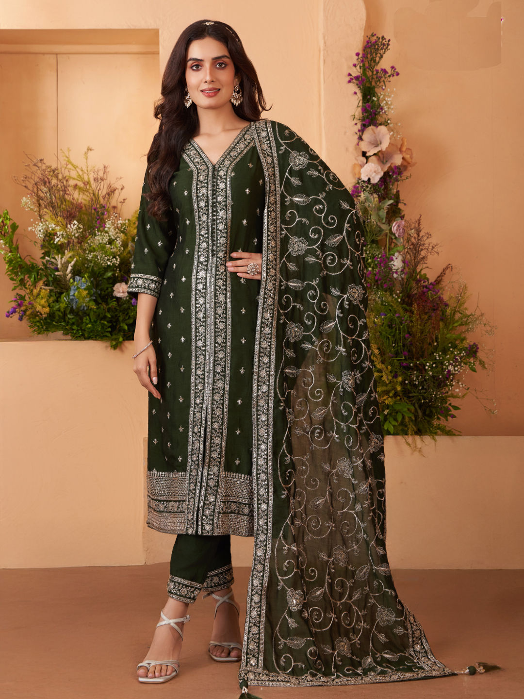 Black and Grey color Salwar Kameez in Silk fabric with Stone, Thread work