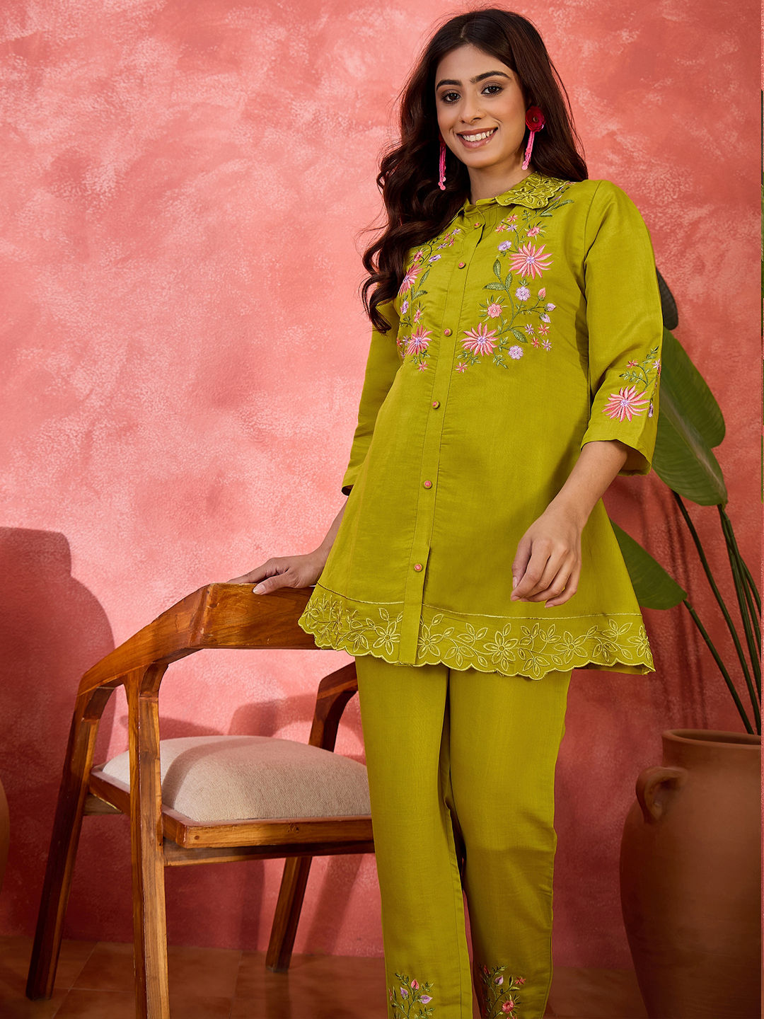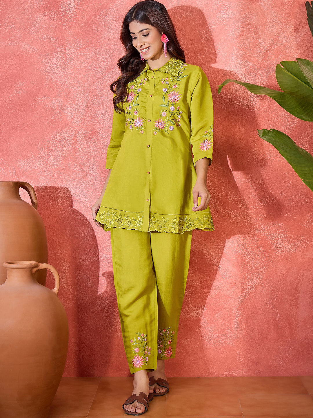 Green color Salwar Kameez in Silk fabric with Embroidered work