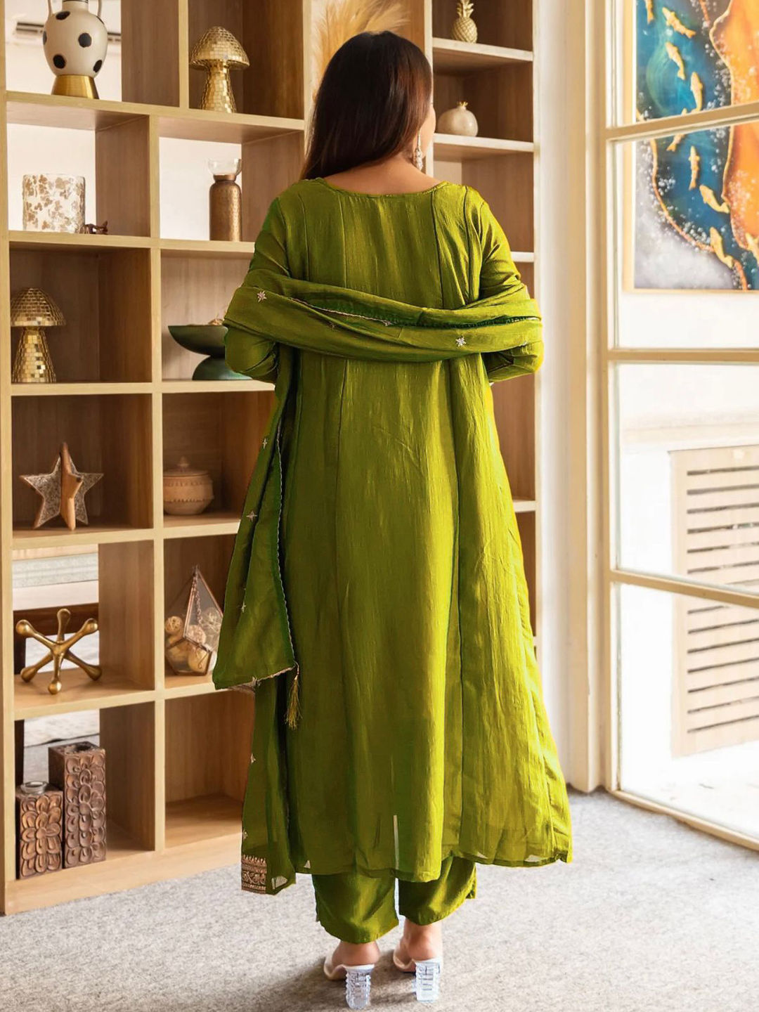 Green color Salwar Kameez in Silk fabric with Embroidered, Thread work