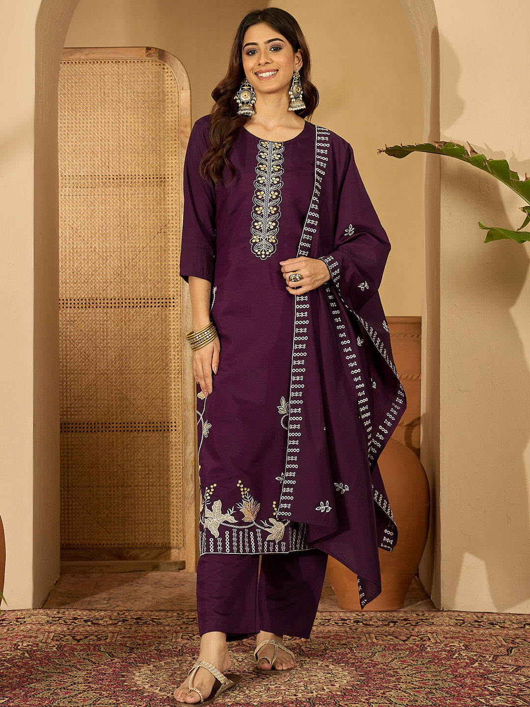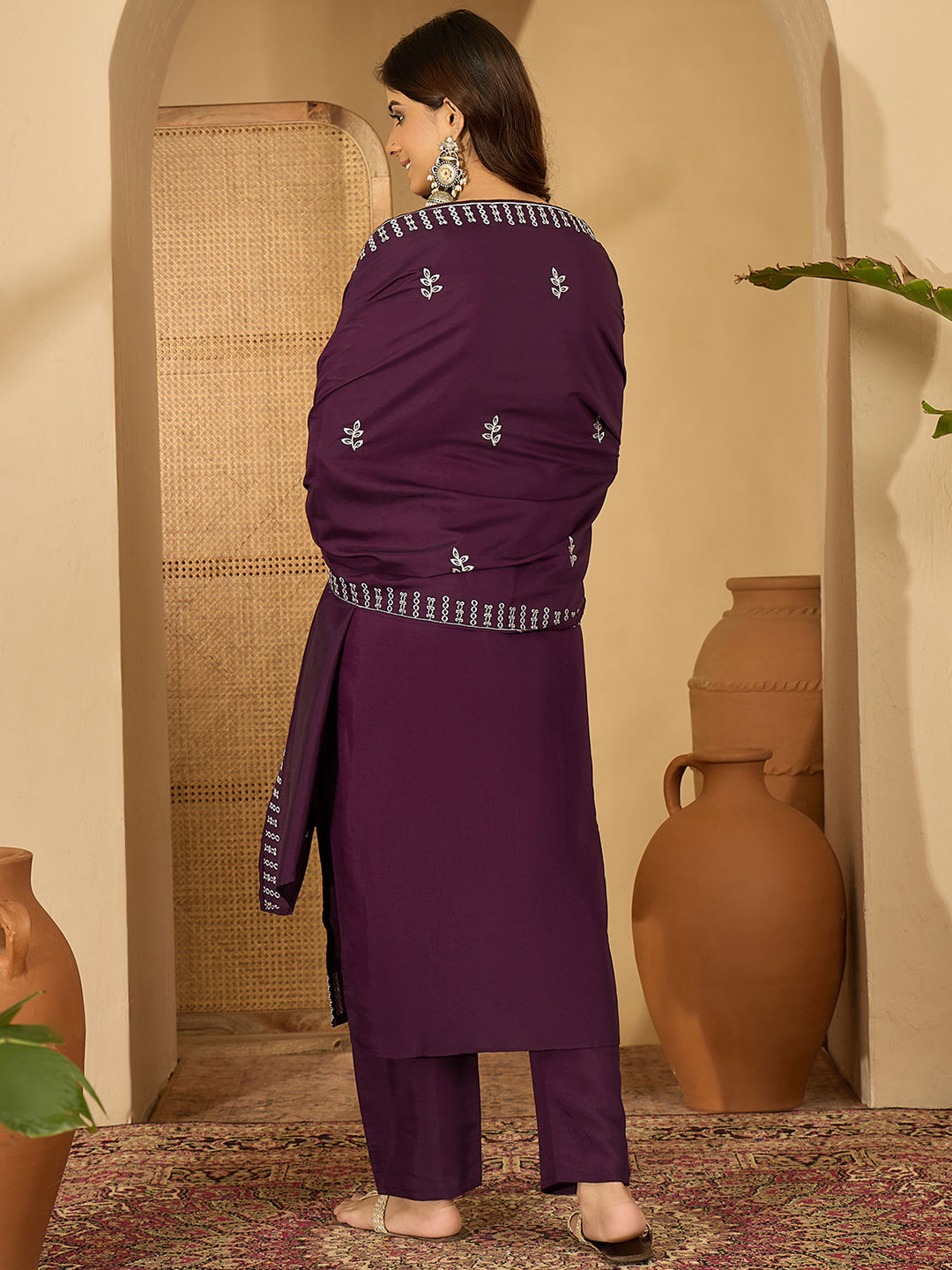 Purple and Violet color Salwar Kameez in Silk fabric with Embroidered work