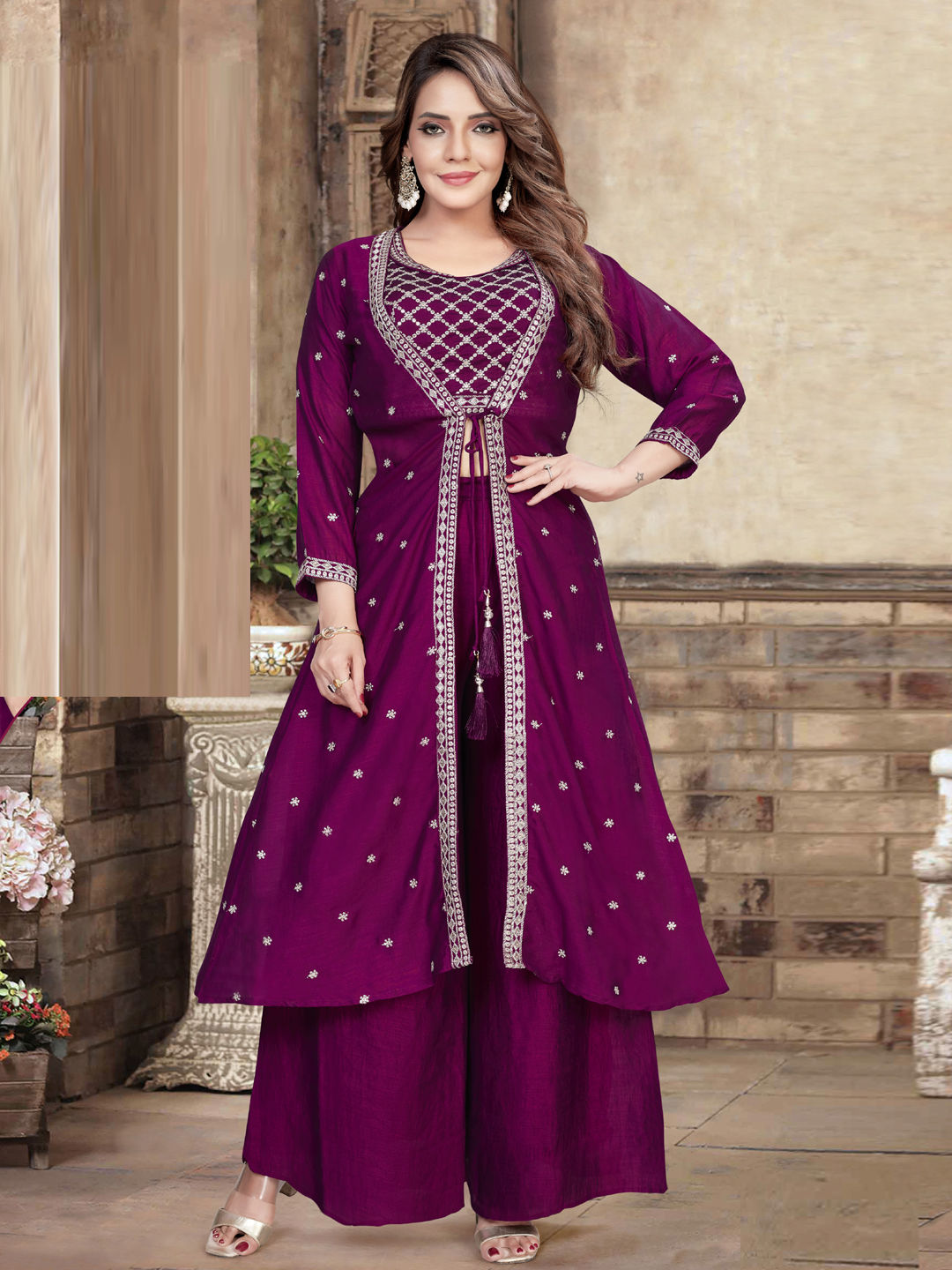 Purple and Violet color Salwar Kameez in Silk fabric with Embroidered, Sequence, Thread, Zari work