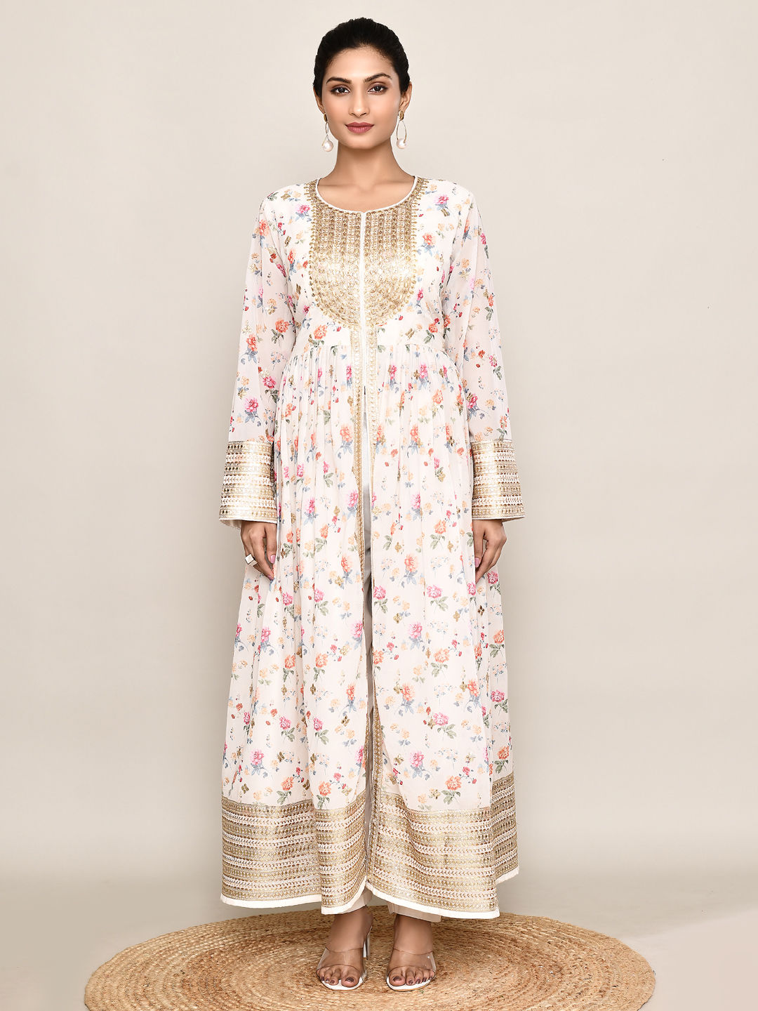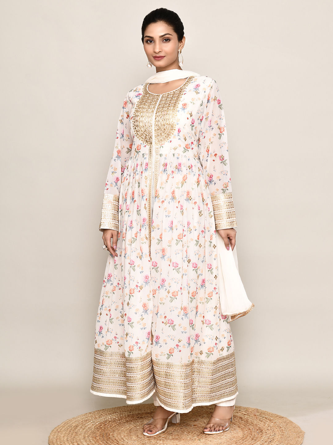 in White and Off White with Embroidered work