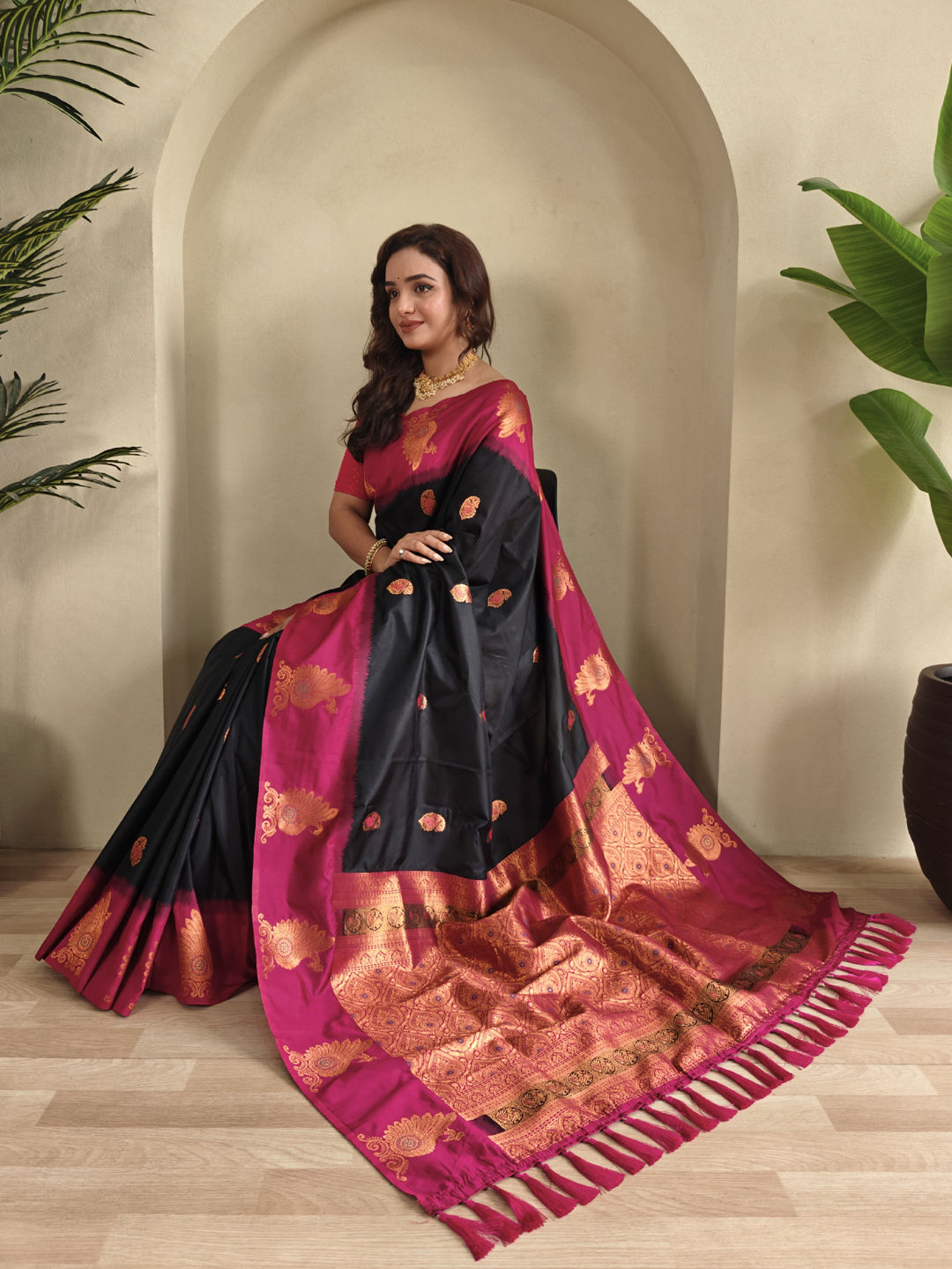 Black and Grey color Saree in Silk fabric with Weaving, Zari work