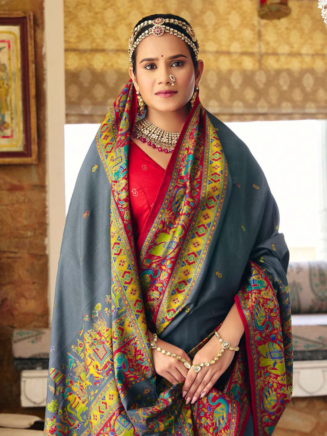 Silk Traditional Saree in Pink and Majenta with Weaving work