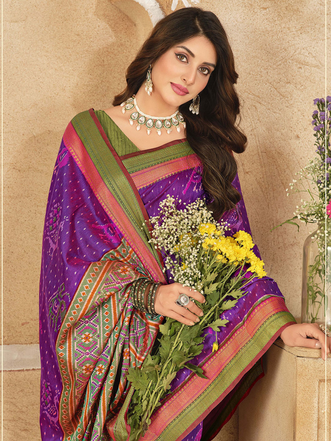 Silk Traditional Saree in Pink and Majenta with Weaving work