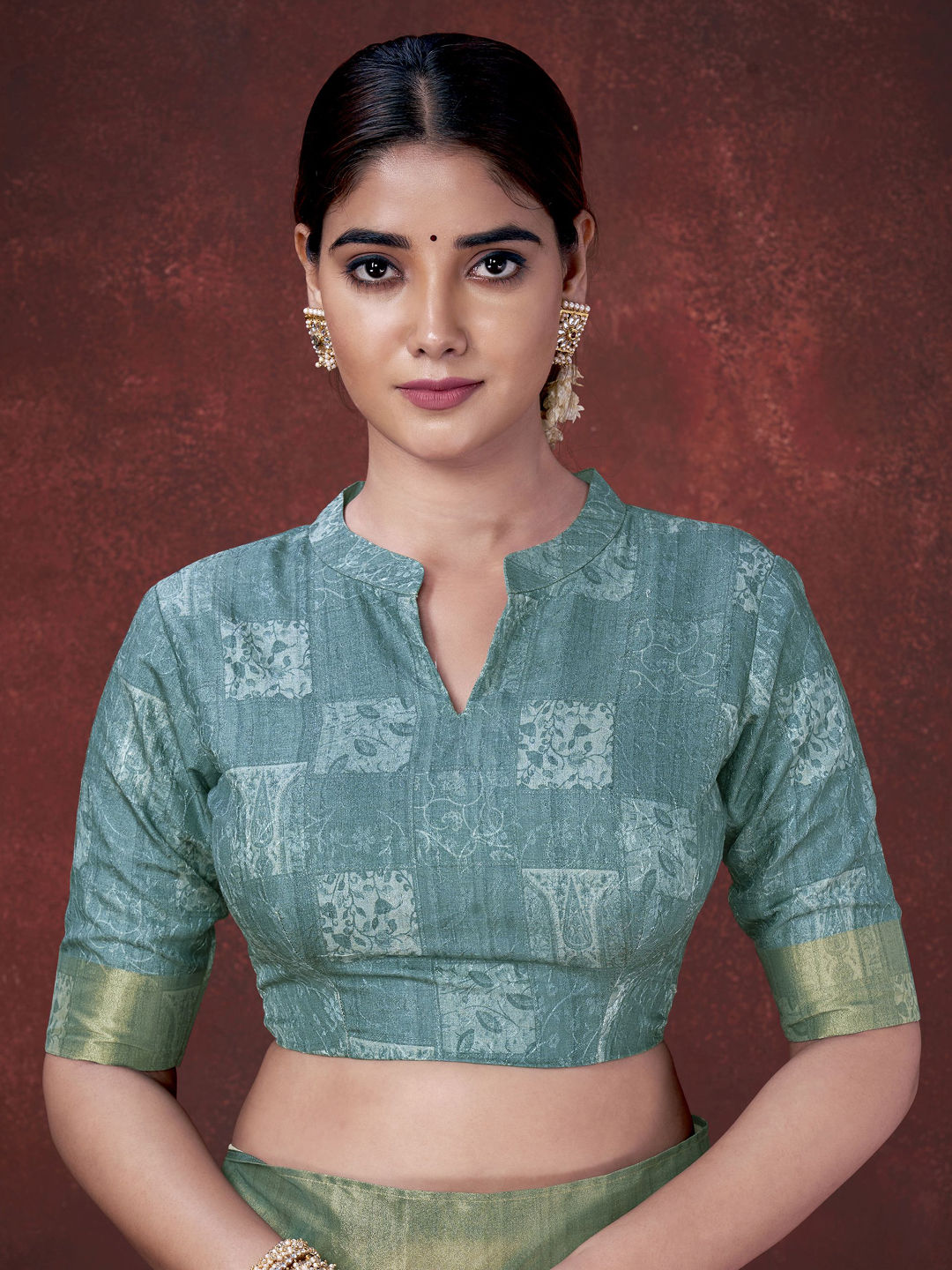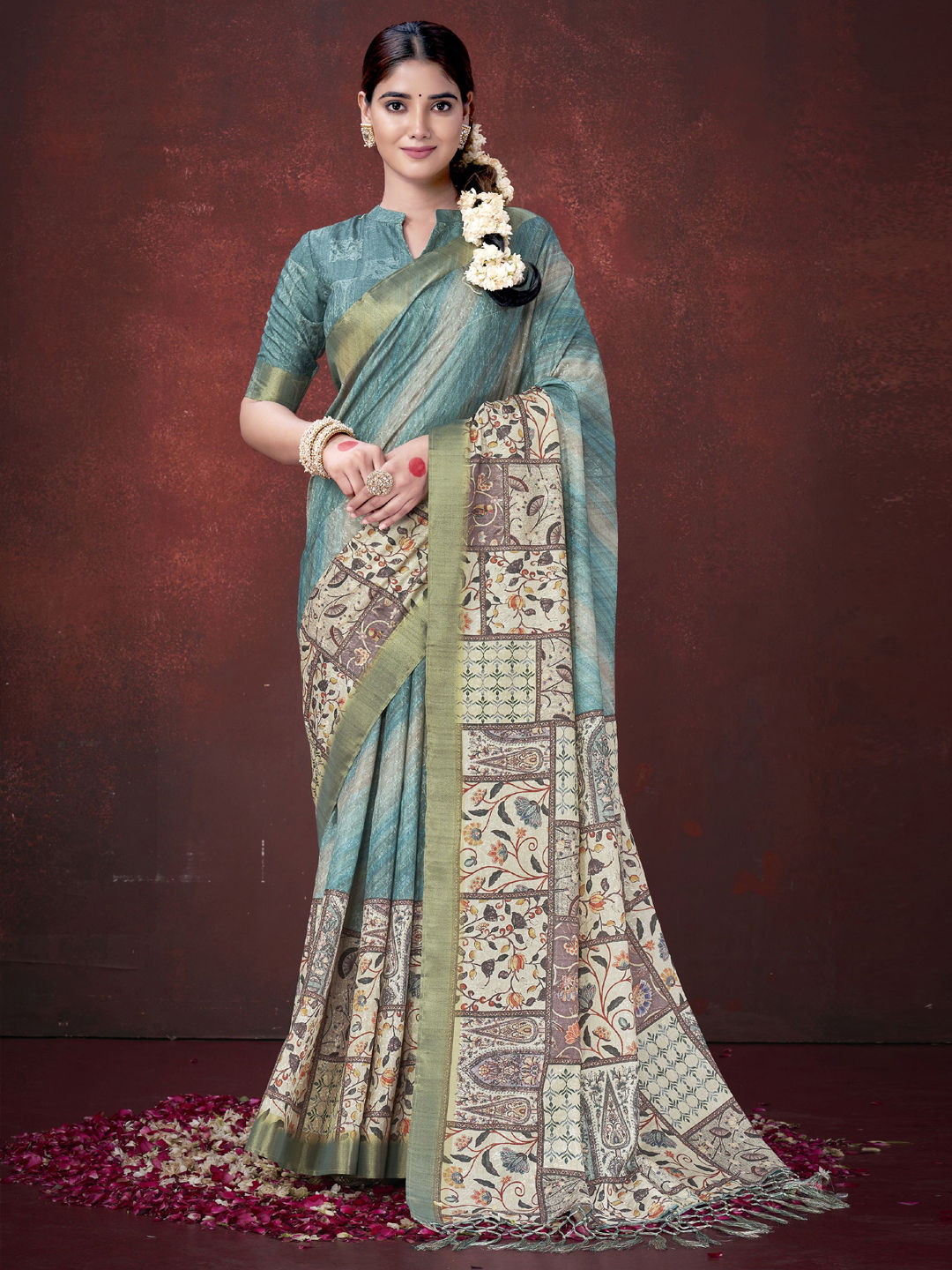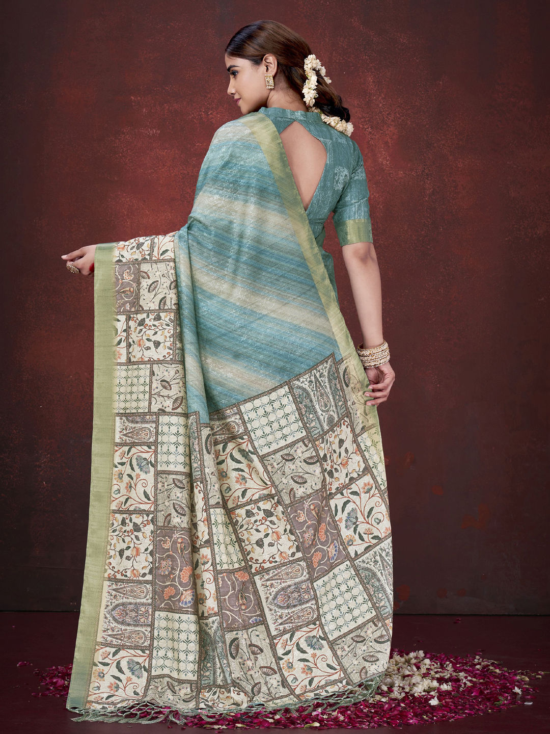 Blue color Saree in Silk fabric with Floral, Foil Print work