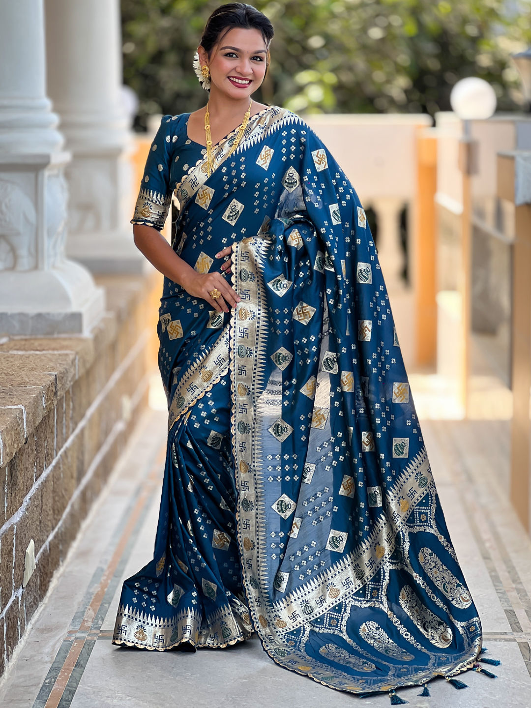 Silk Party Wear Saree in Pink and Majenta with Weaving work