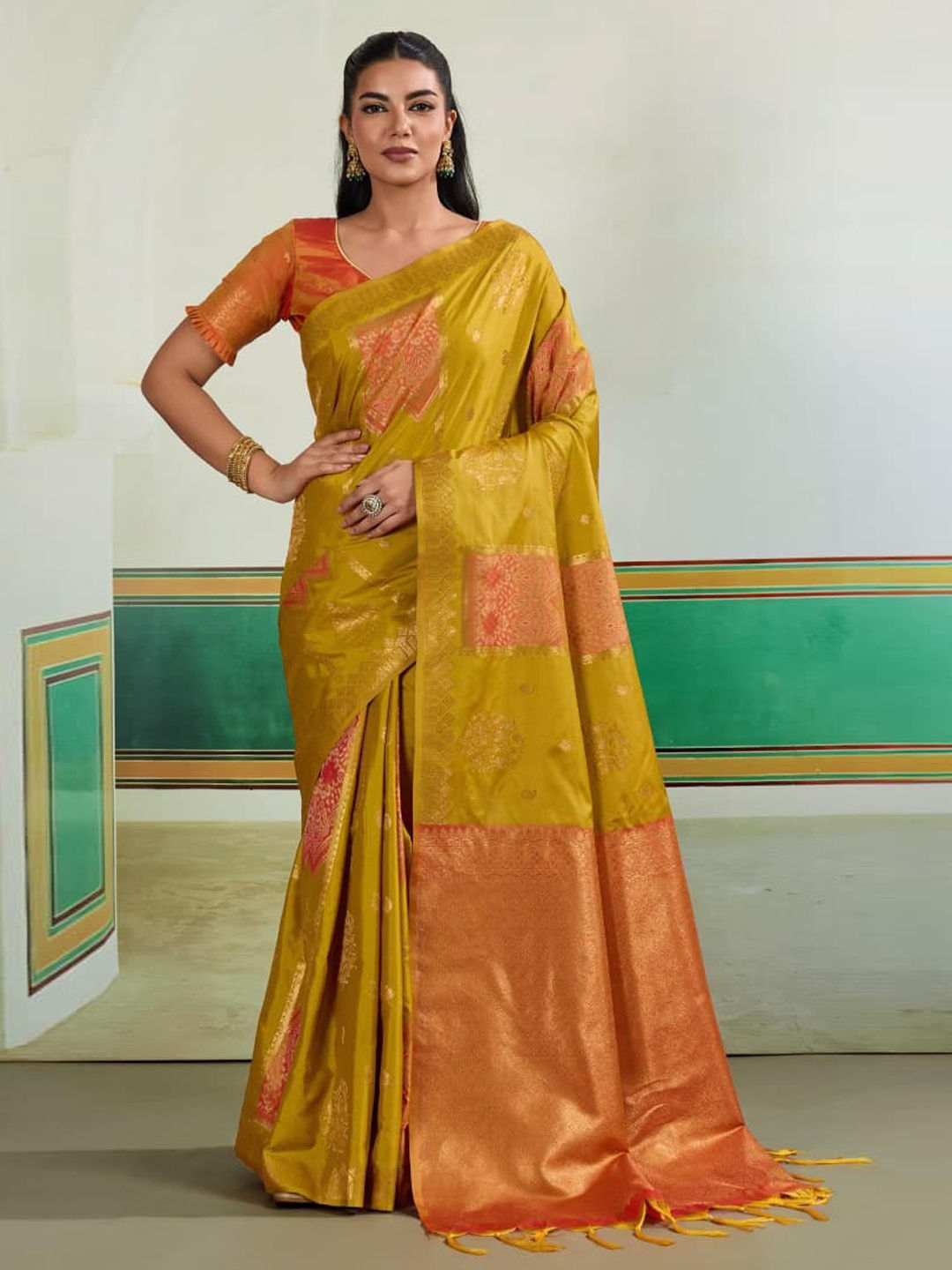 Silk Festive Saree in Gold with Weaving work