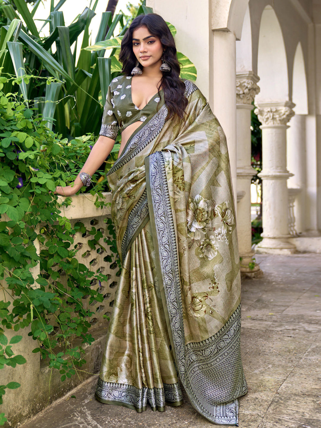 in Green with Floral work