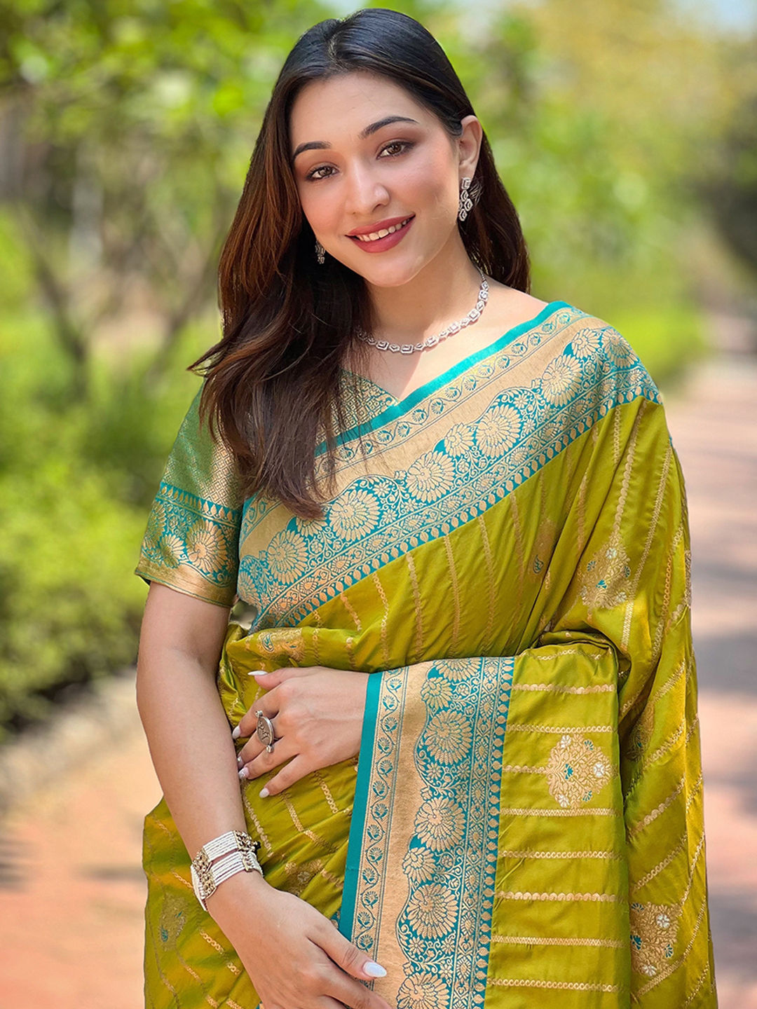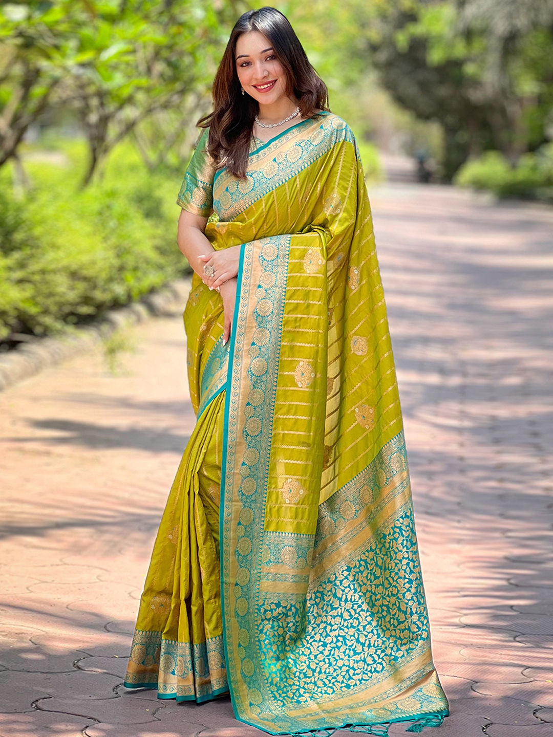 Green color Saree in Silk fabric with Weaving, Zari work