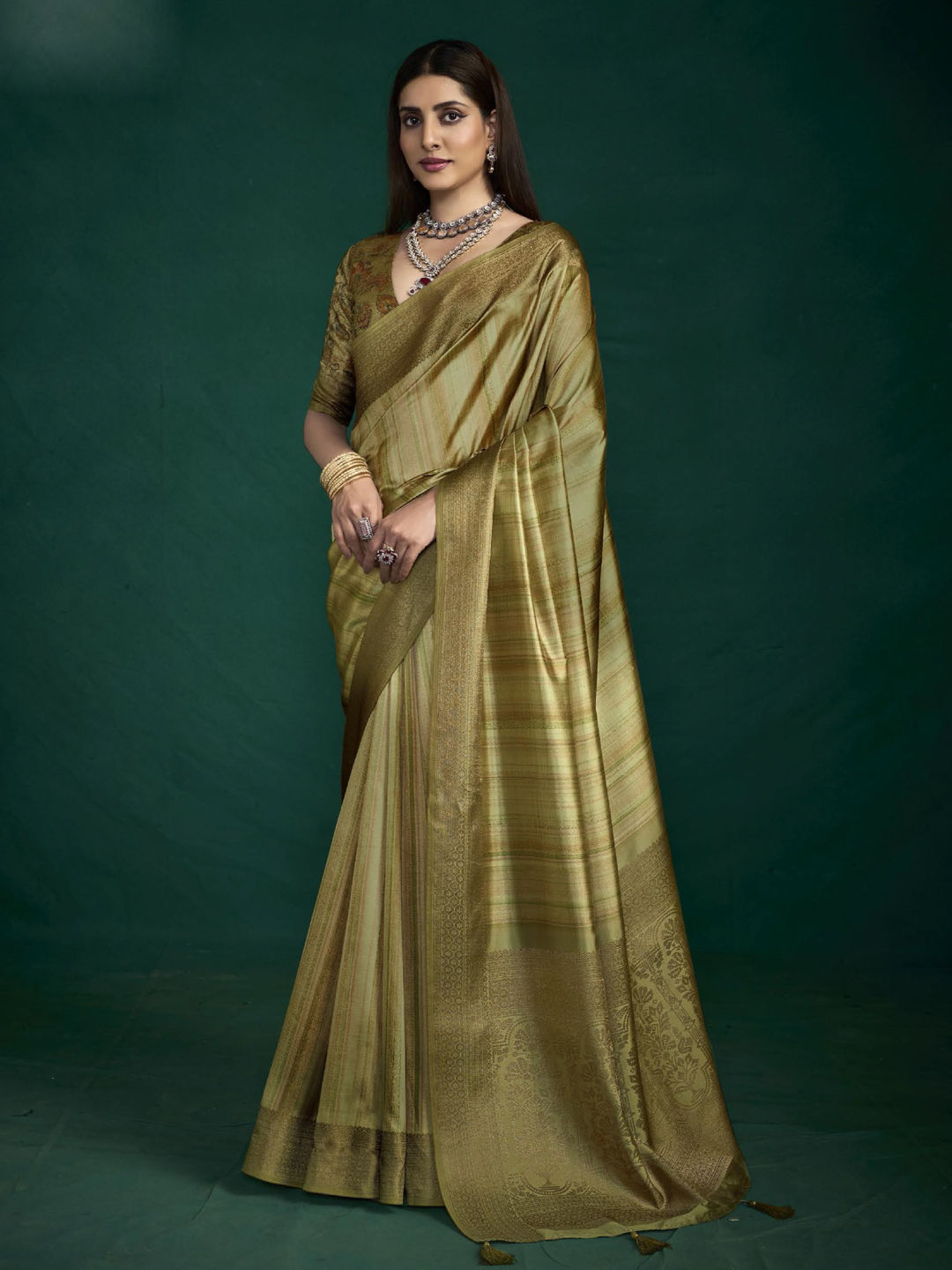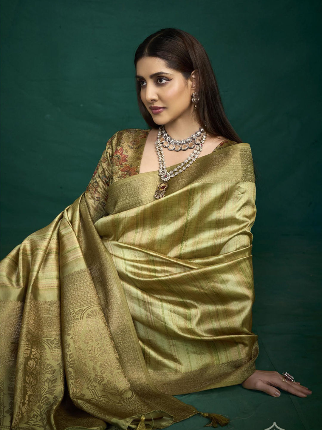 Green color Saree in Silk fabric with Weaving work