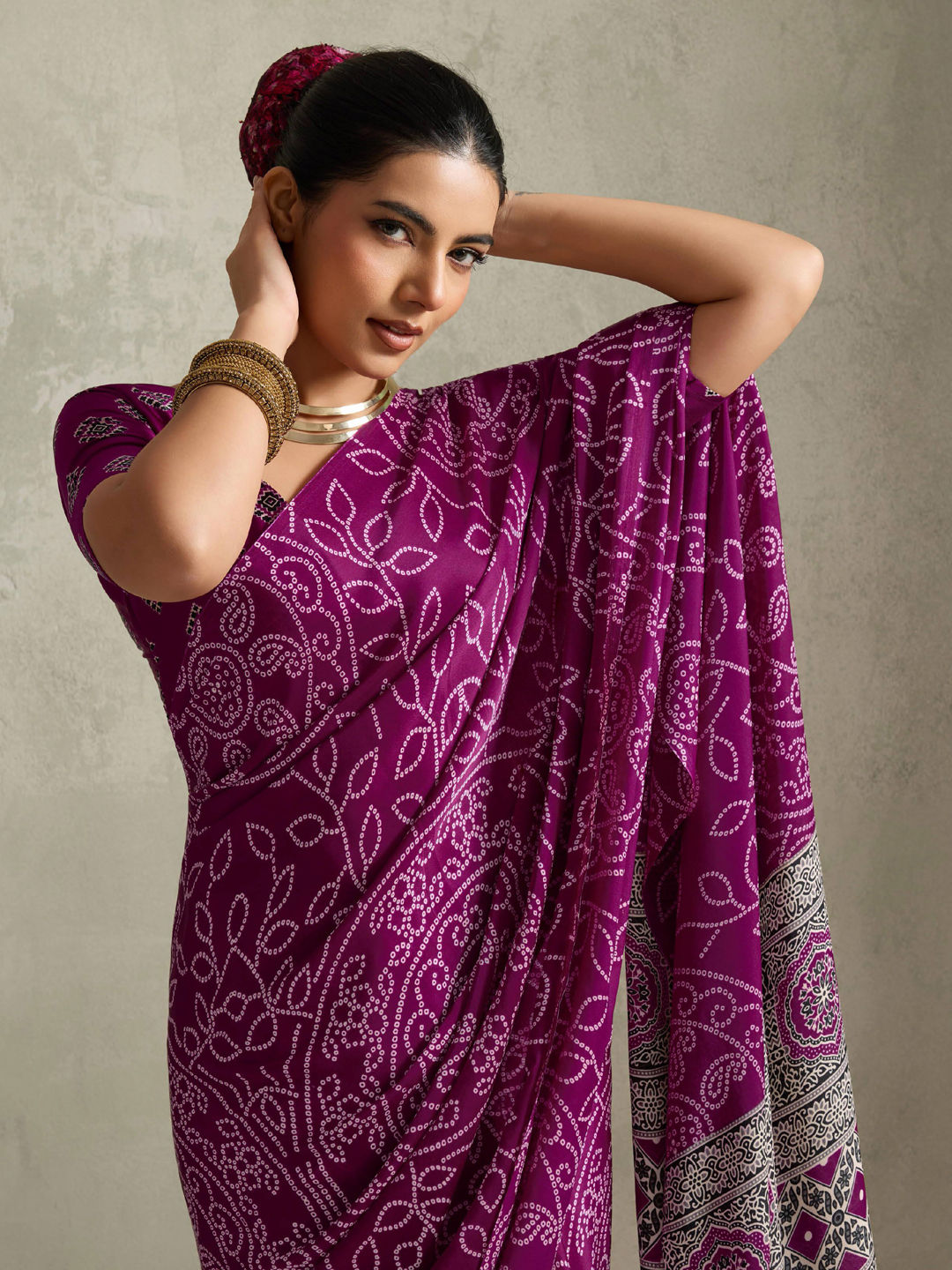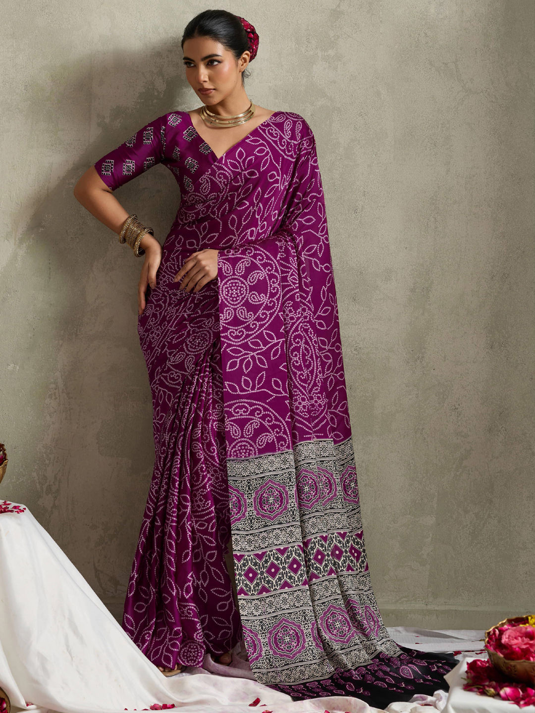 Pink and Majenta color Saree in Silk fabric with Bandhej, Printed work