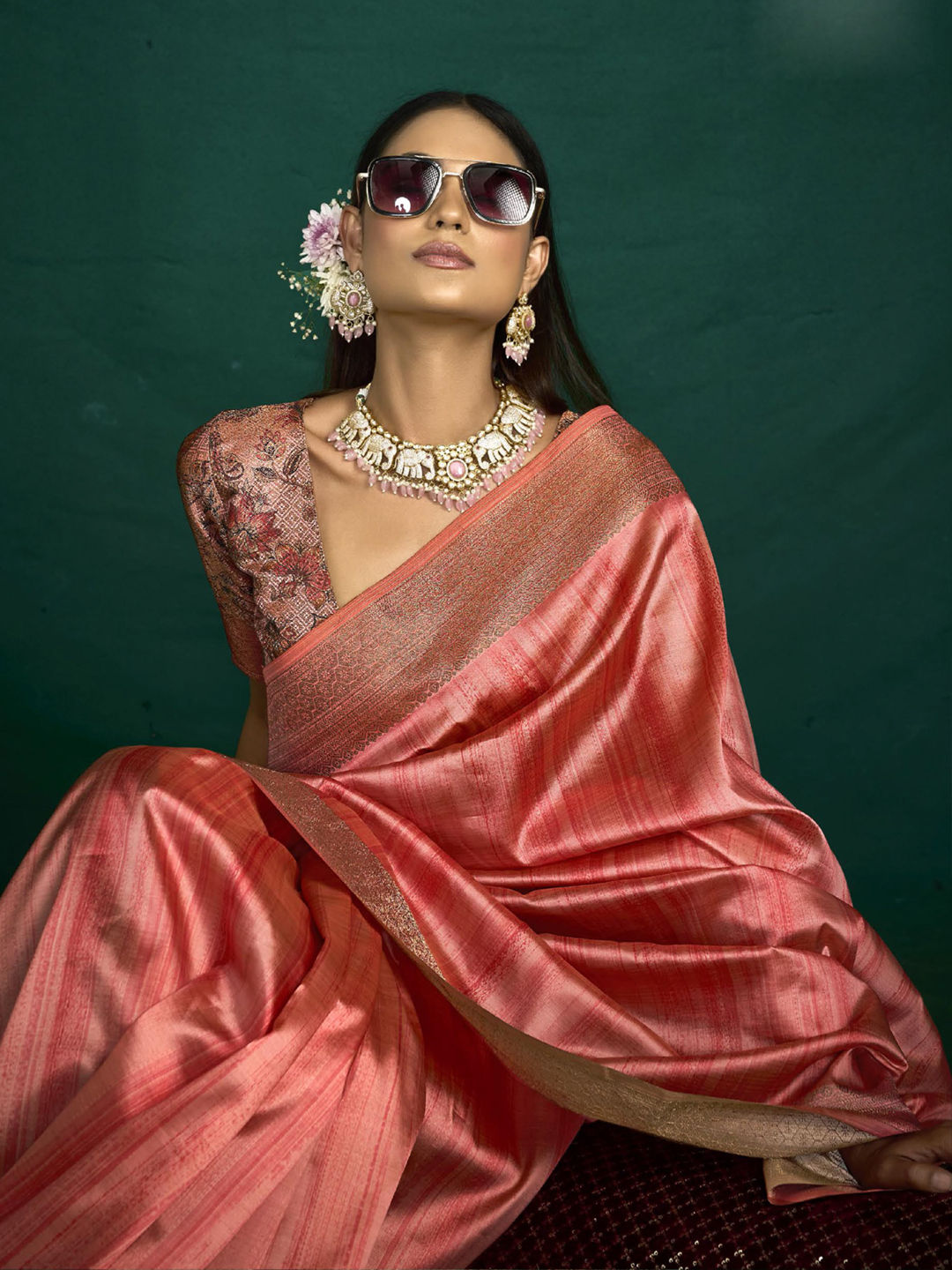 Silk Traditional Saree in Pink and Majenta with Weaving work