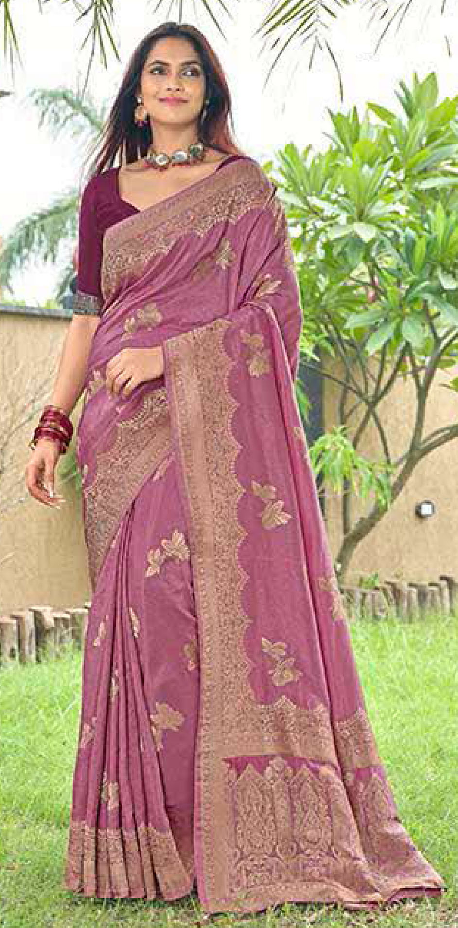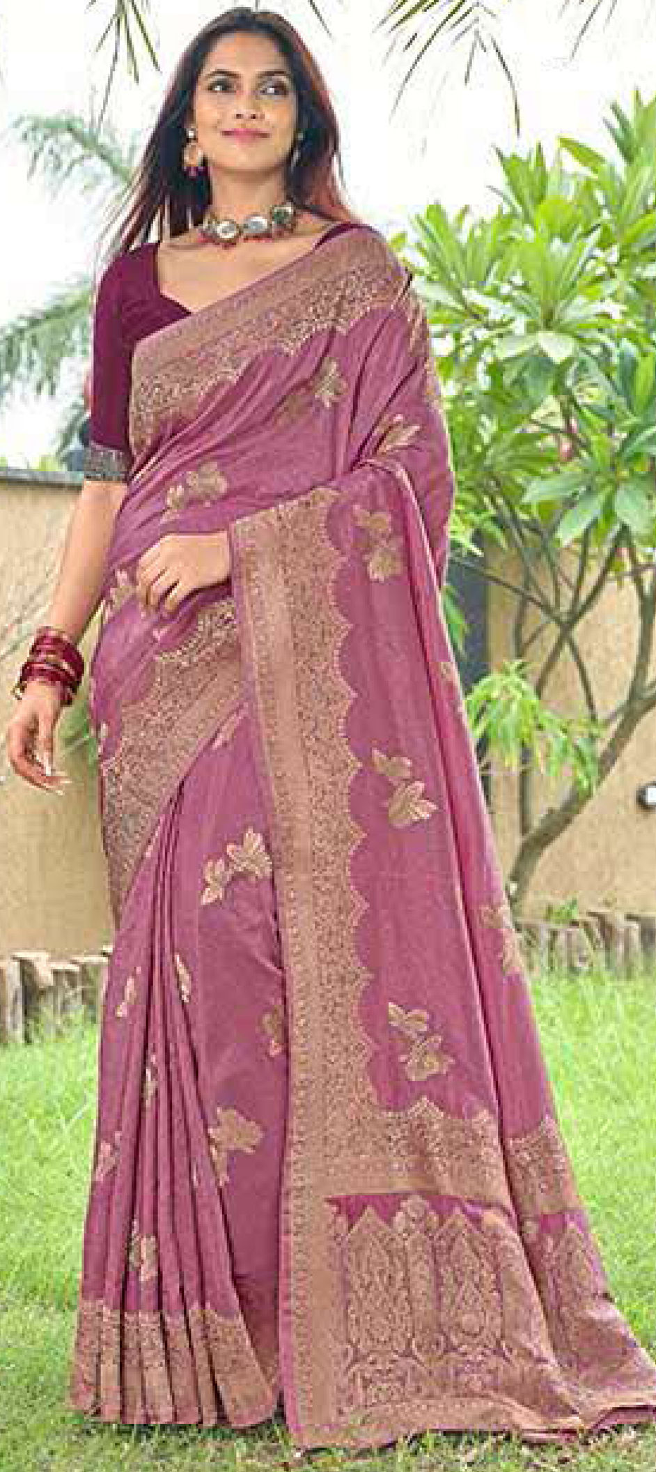 Purple and Violet color Saree in Silk fabric with Embroidered, Weaving, Zari work