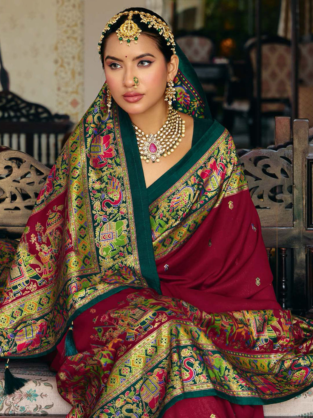 Red and Maroon color Saree in Silk fabric with Weaving work