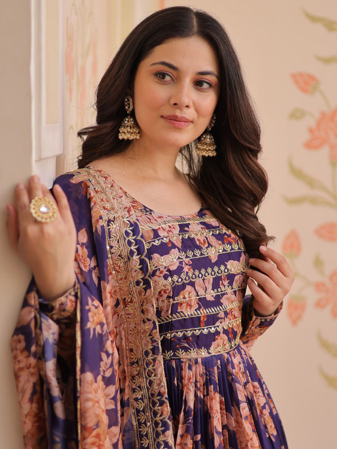 in Purple and Violet with Printed work