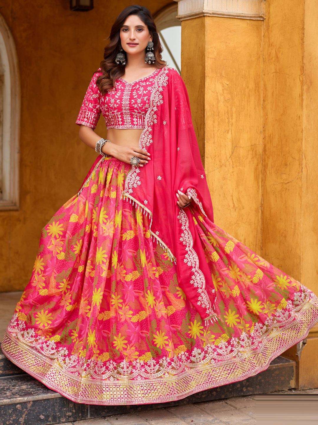 Pink and Majenta color Lehenga in Silk fabric with Embroidered, Printed work