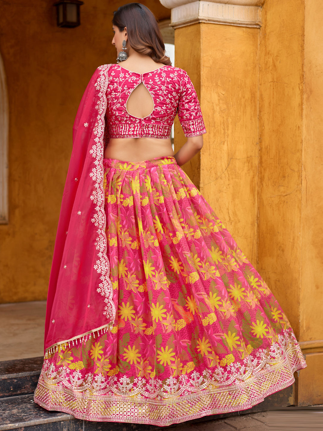 in Pink and Majenta with Embroidered work
