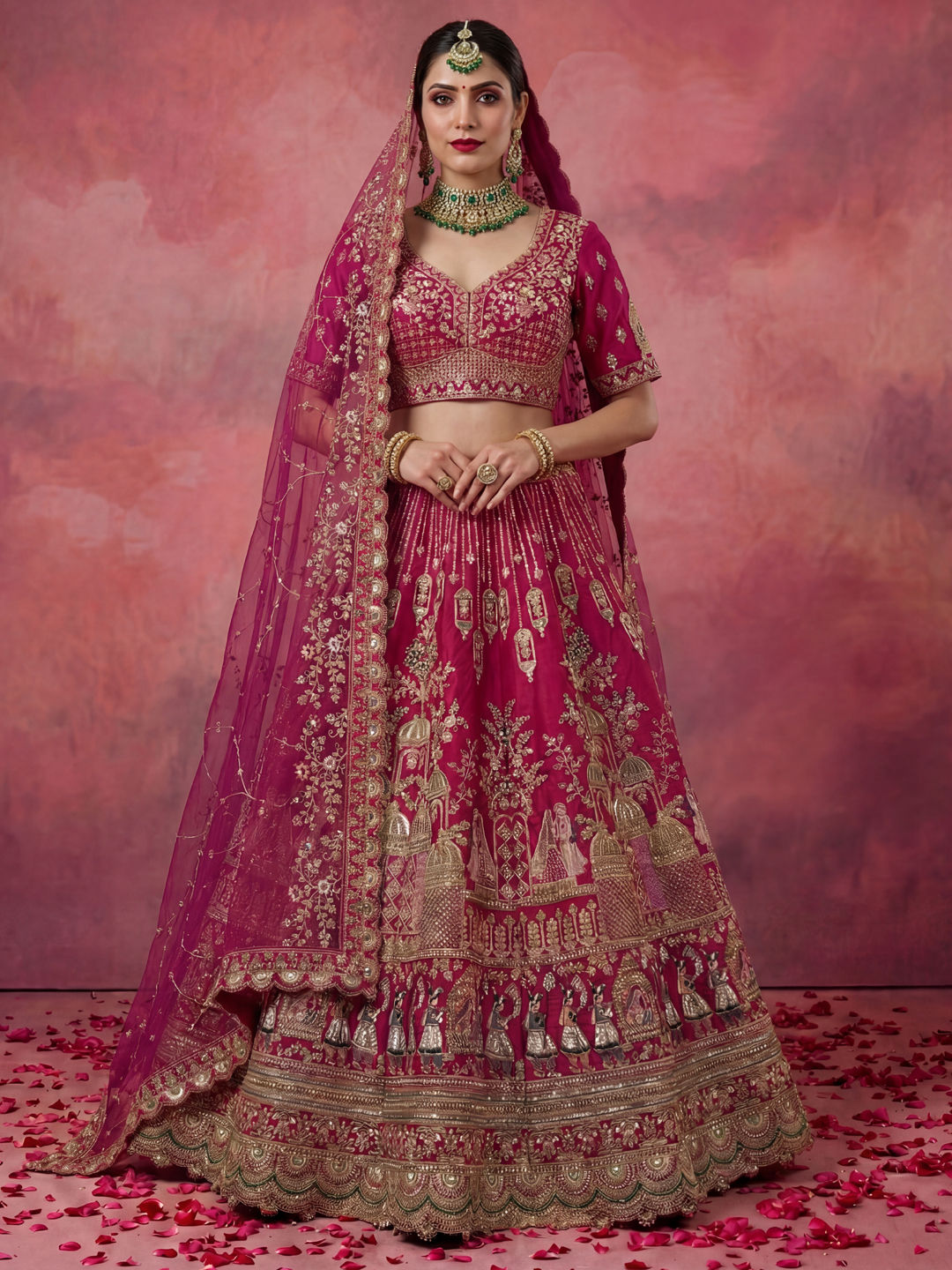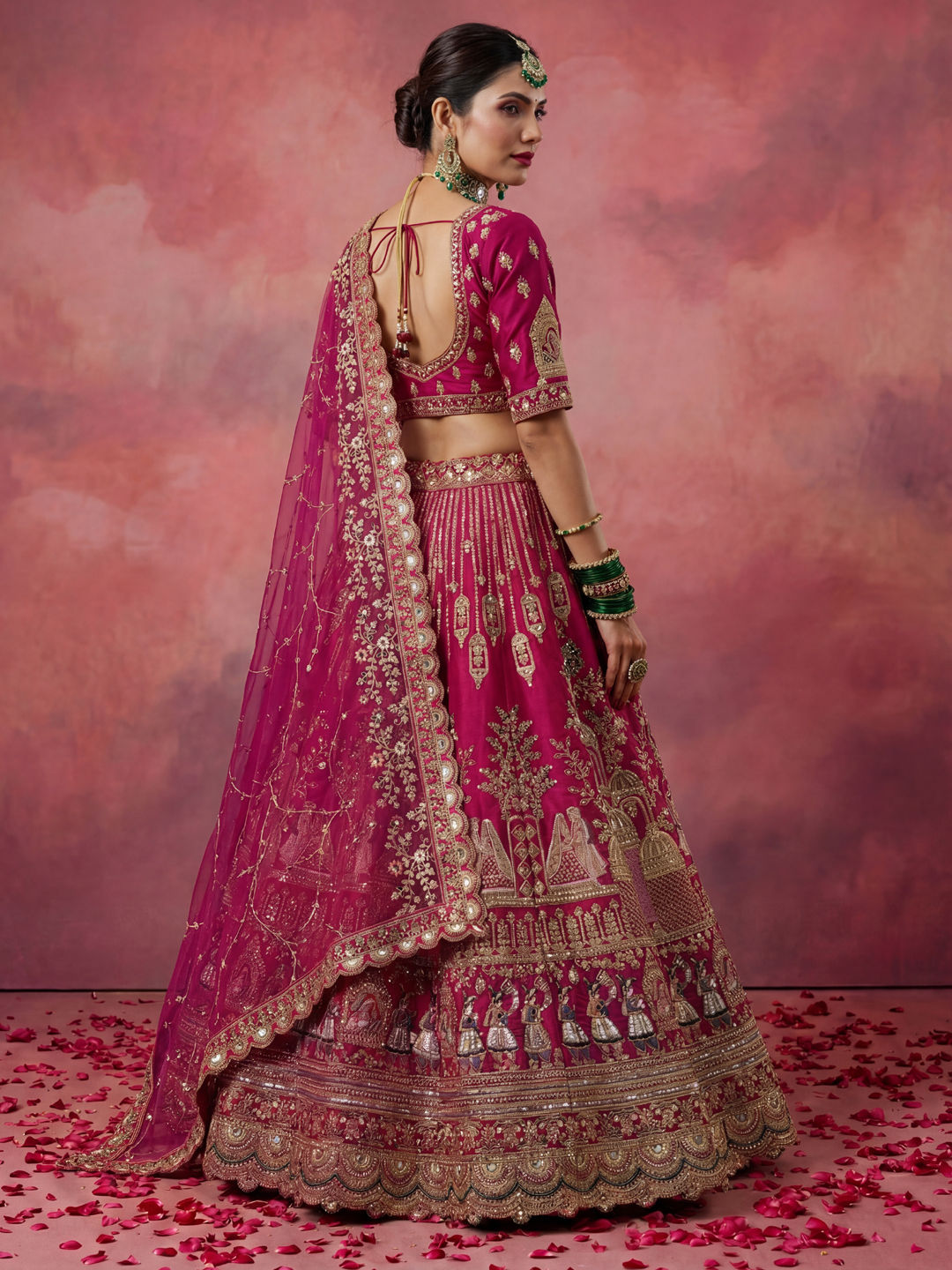 Pink and Majenta color Lehenga in Silk fabric with Embroidered, Sequence, Stone, Thread, Zari work