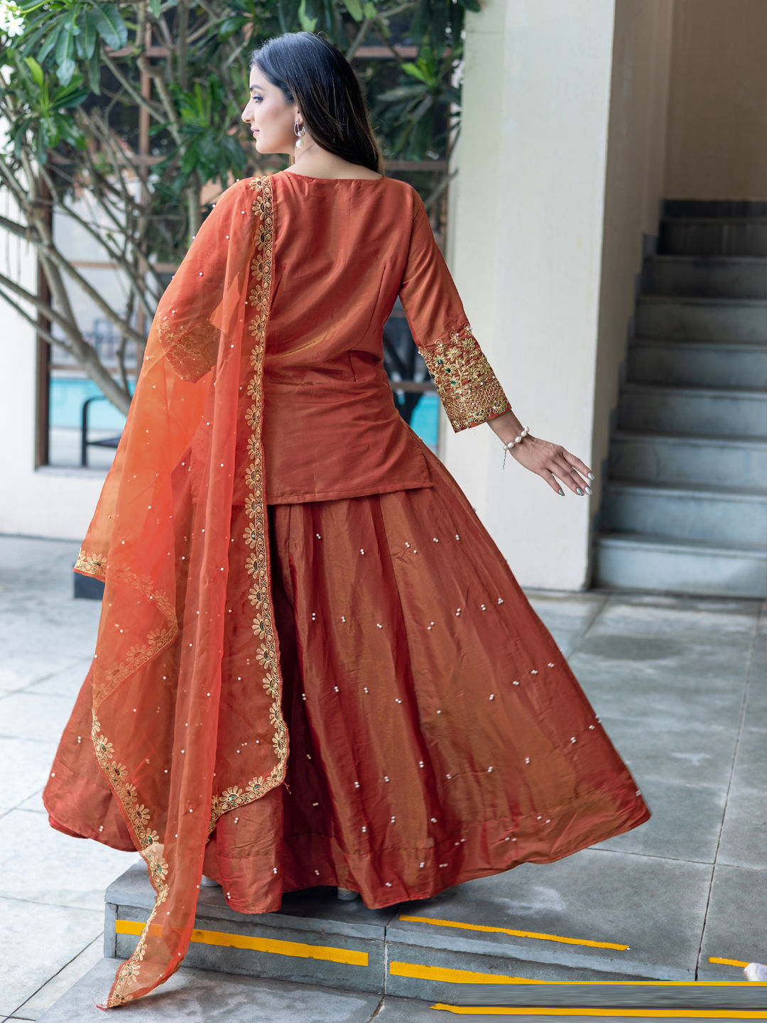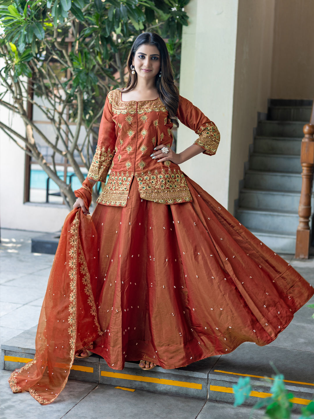 Beige and Brown color Long Lehenga Choli in Silk fabric with Embroidered, Moti, Sequence, Thread work
