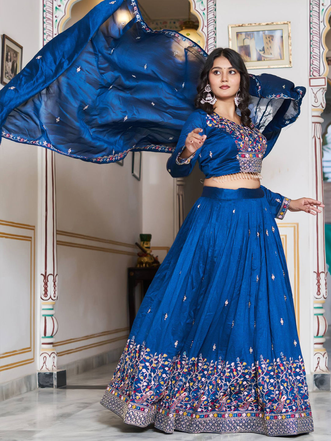 Blue color Ready to Wear Lehenga in Silk fabric with Embroidered, Sequence, Thread work