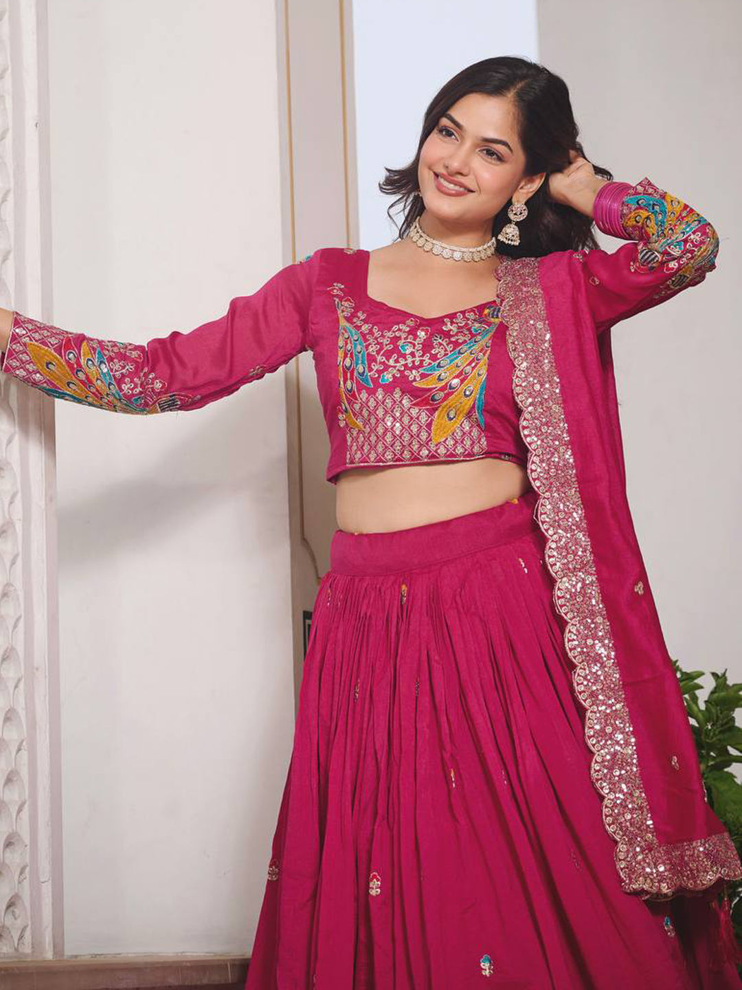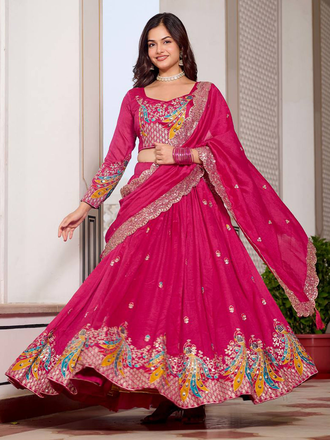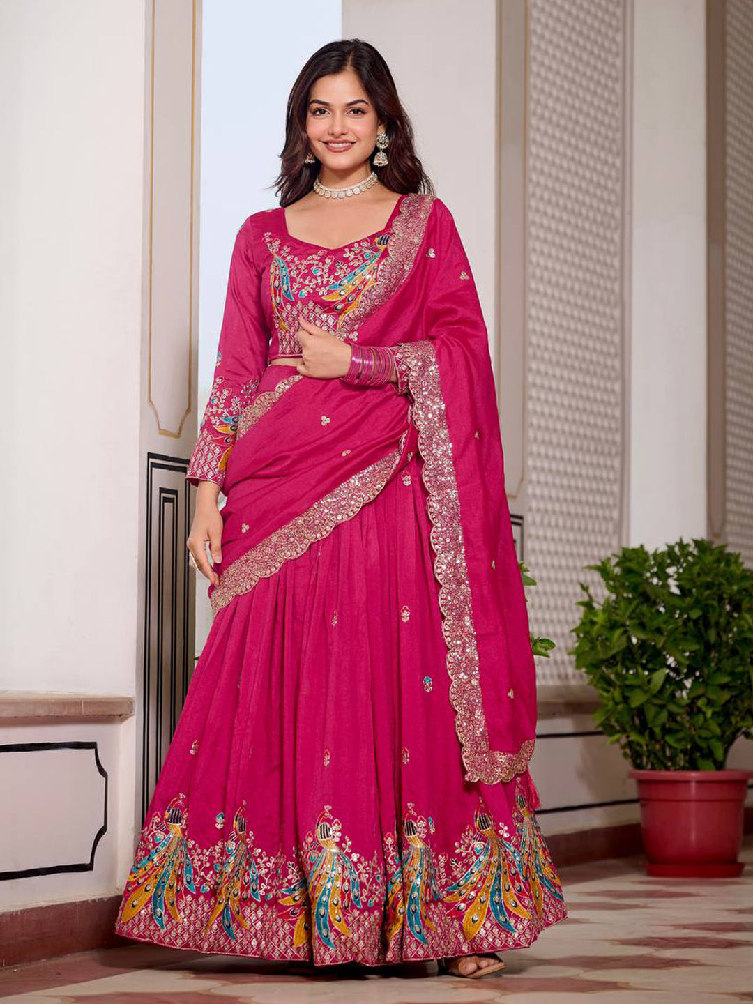 Pink and Majenta color Ready to Wear Lehenga in Silk fabric with Embroidered, Resham, Thread, Zari work
