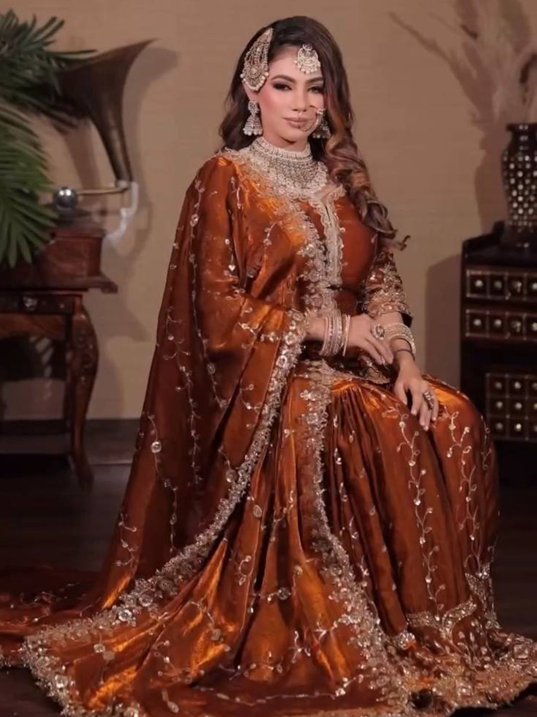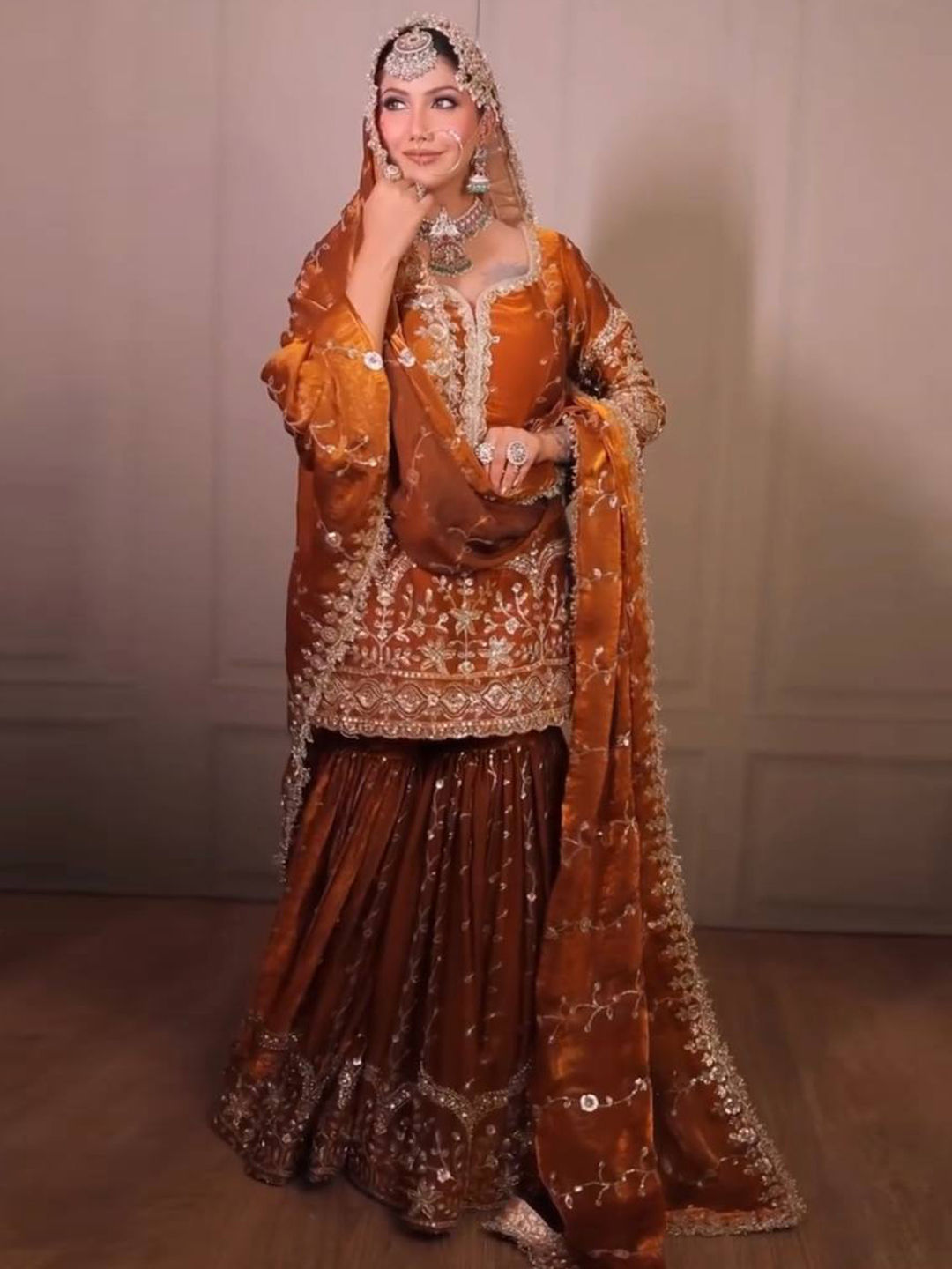 in Beige and Brown with Embroidered work