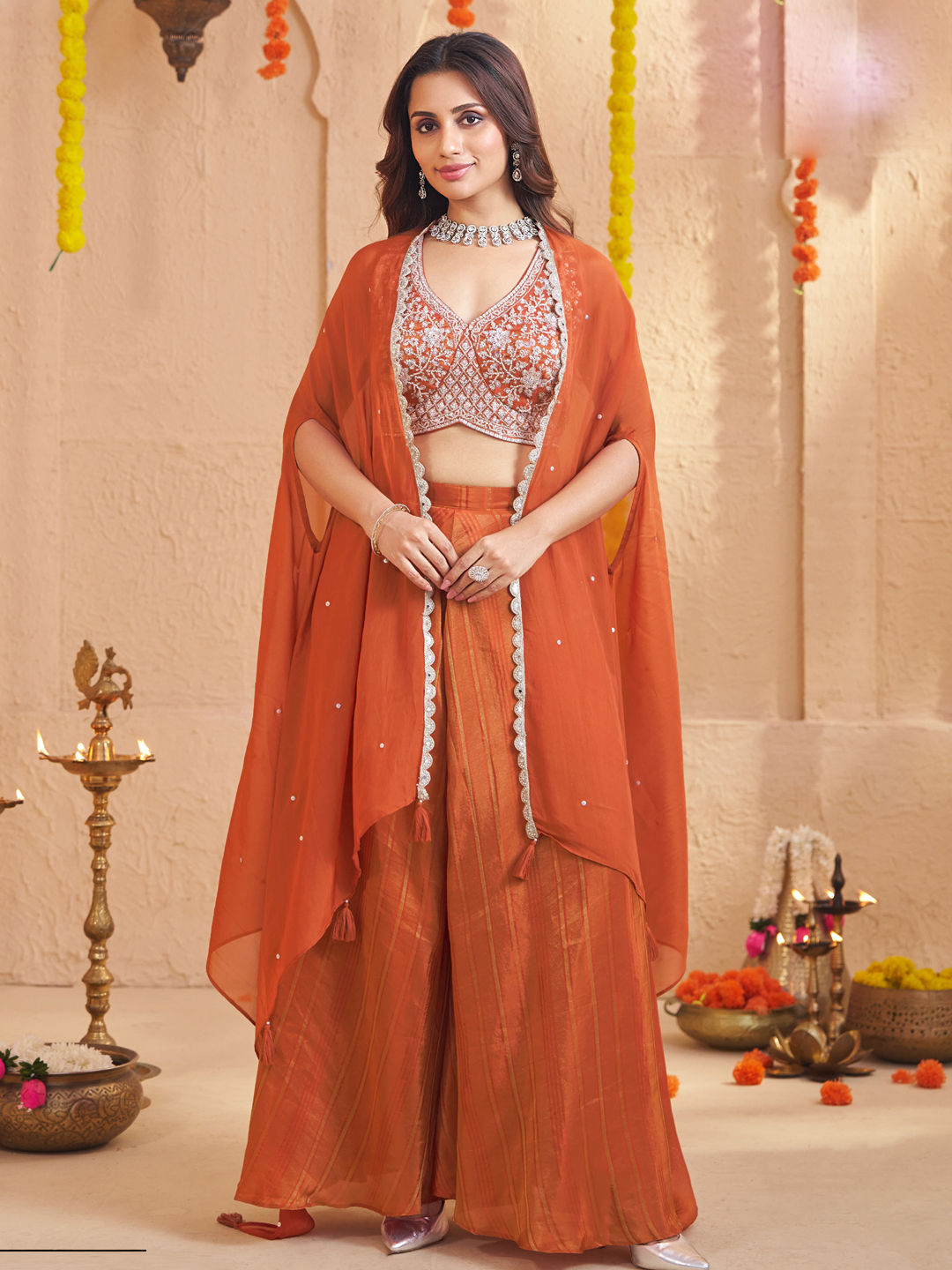 Georgette Reception Salwar Kameez in Beige and Brown with Resham work