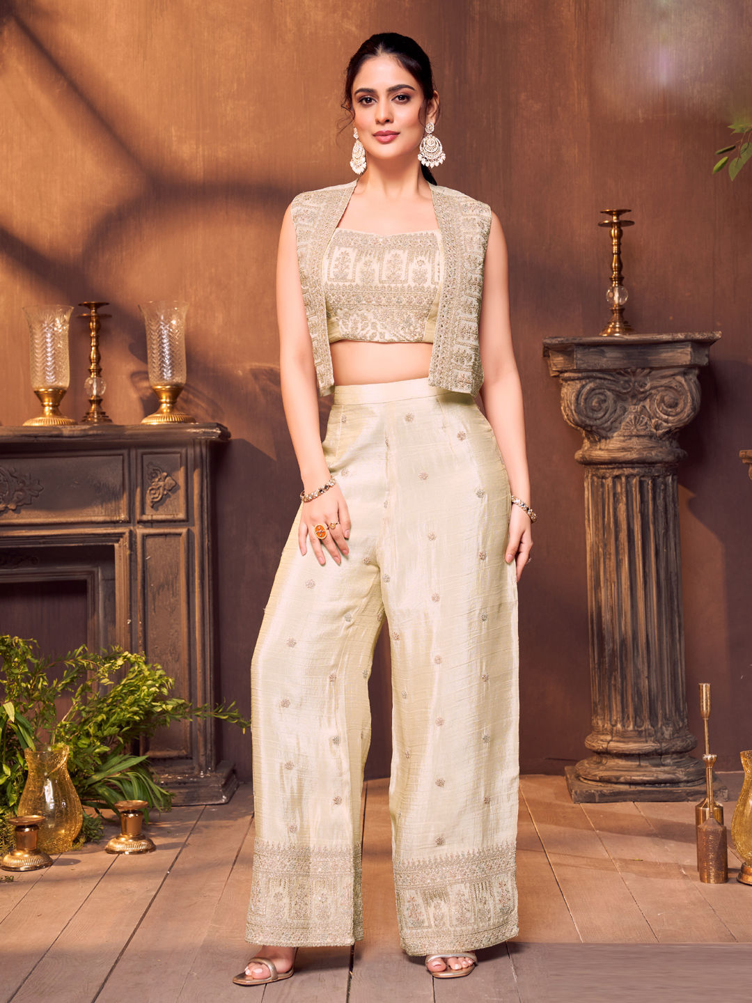 Beige and Brown color Salwar Kameez in Silk fabric with Sequence, Thread, Zari work