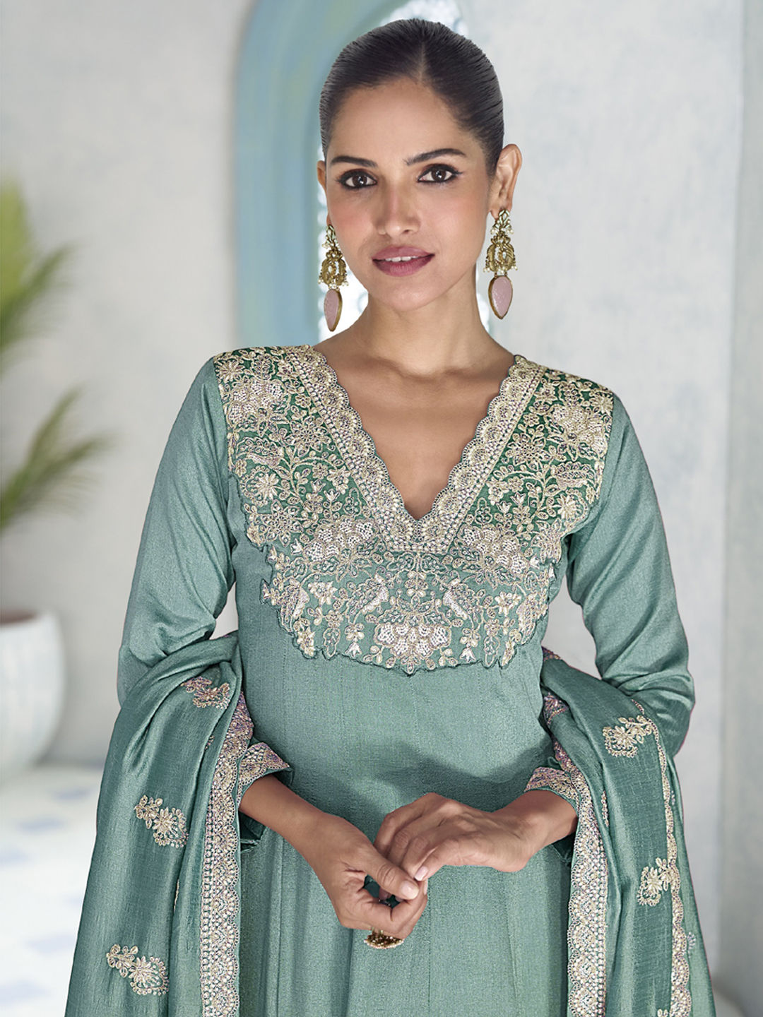 in Blue with Embroidered work