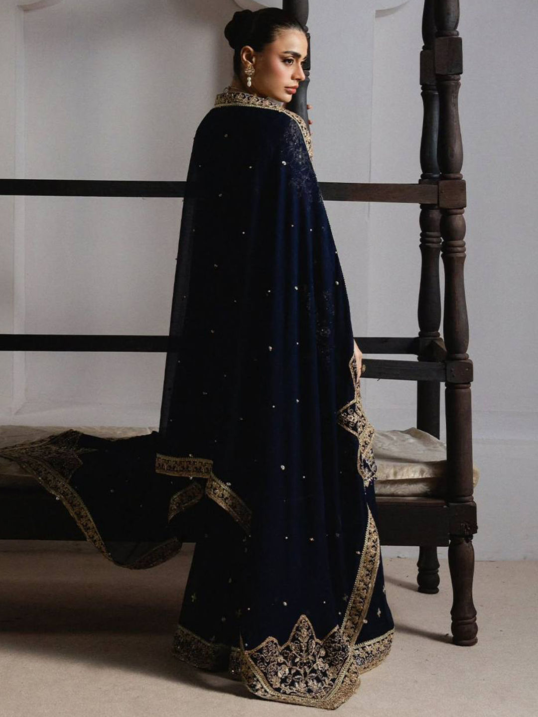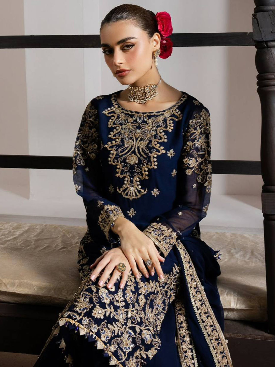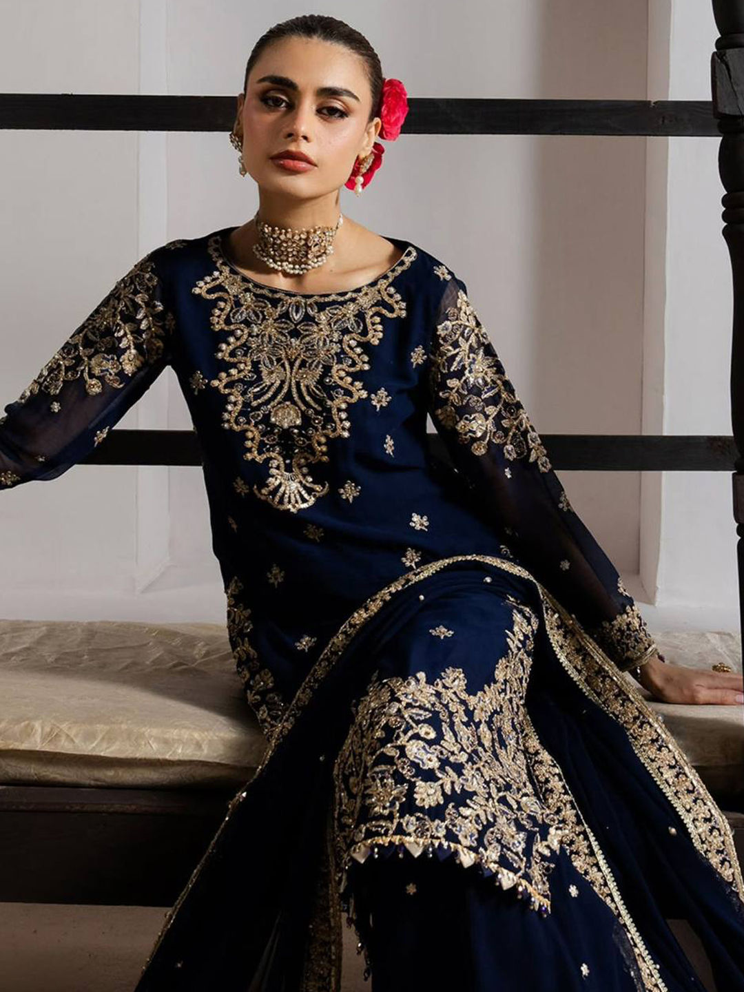 in Blue with Zari work