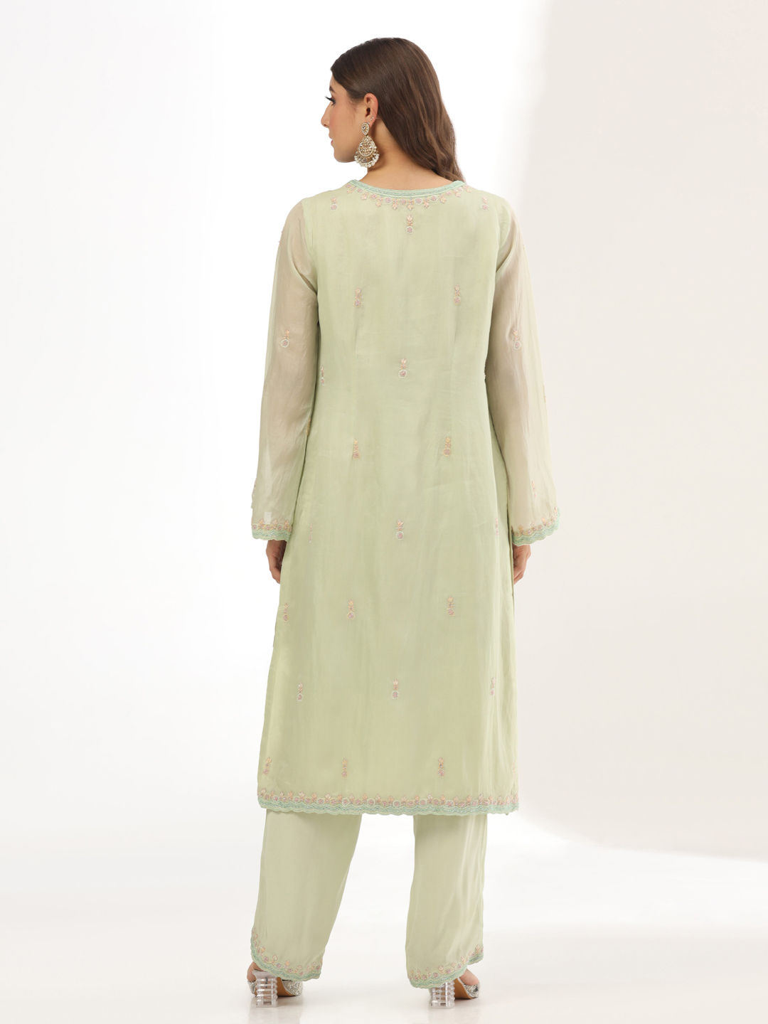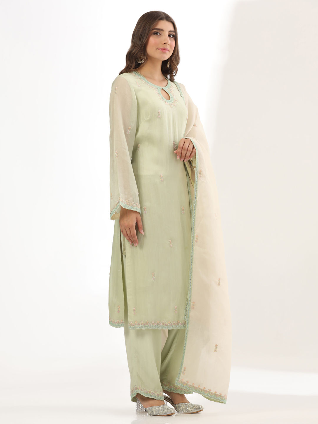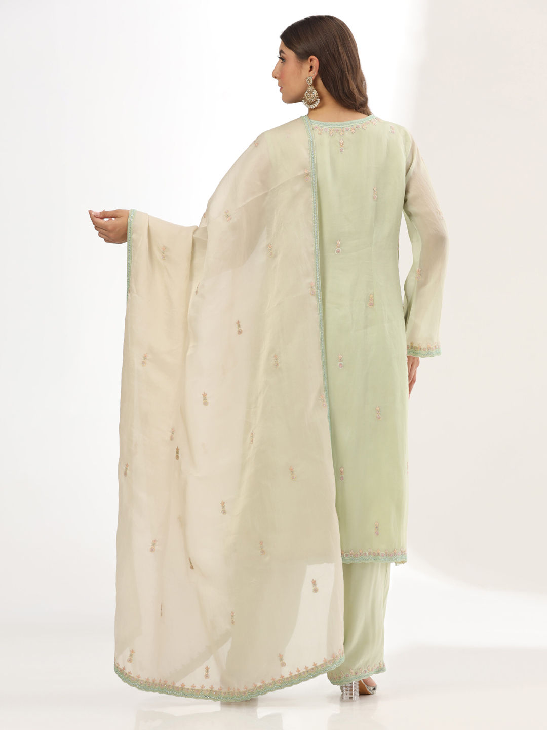 Green color Salwar Kameez in Organza Silk, Silk fabric with Cut Dana, Sequence, Thread work