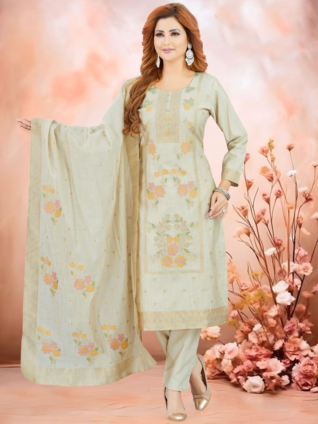 Green color Salwar Kameez in Silk fabric with Weaving work