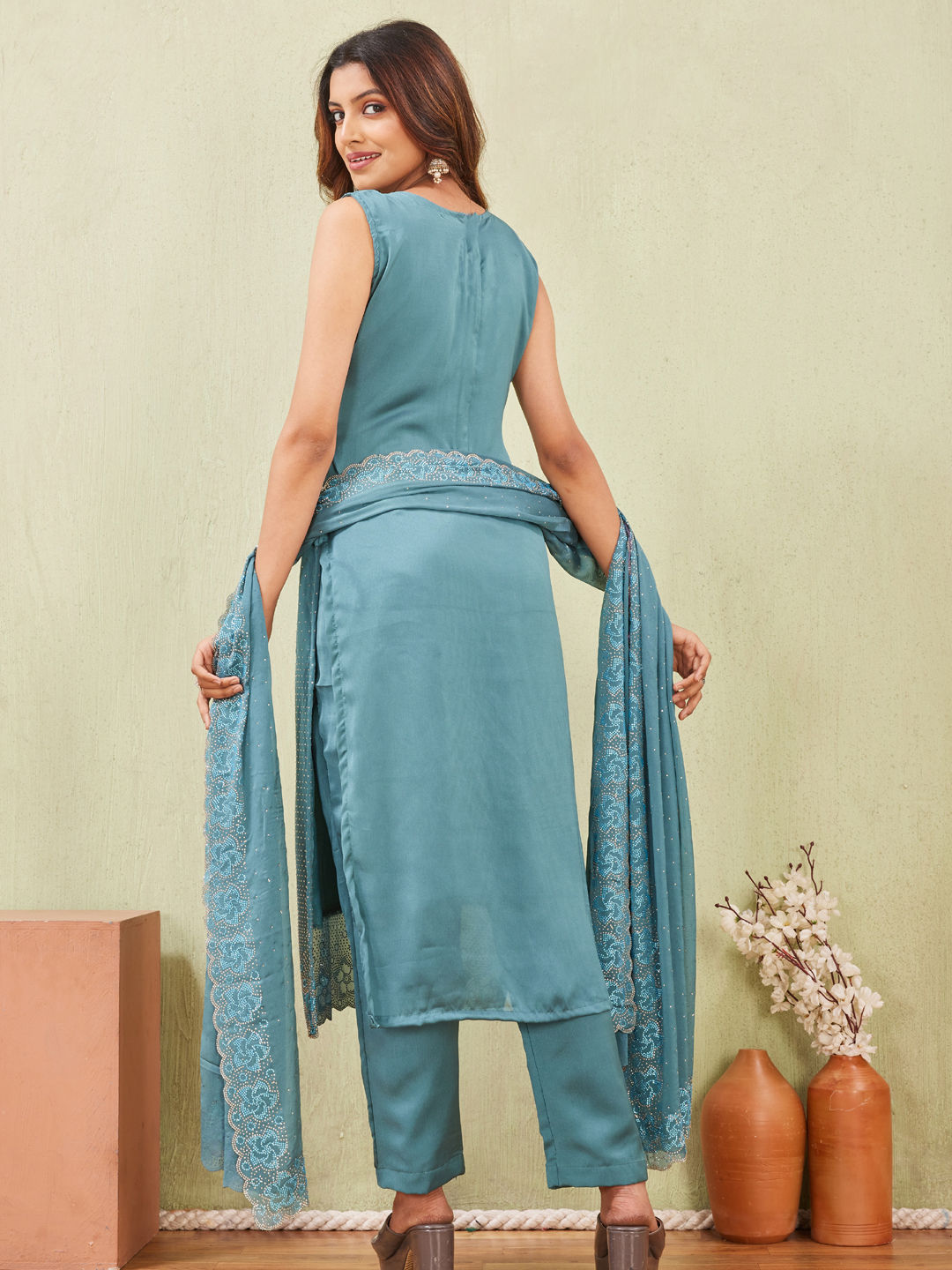 Green color Salwar Kameez in Silk fabric with Zircon work