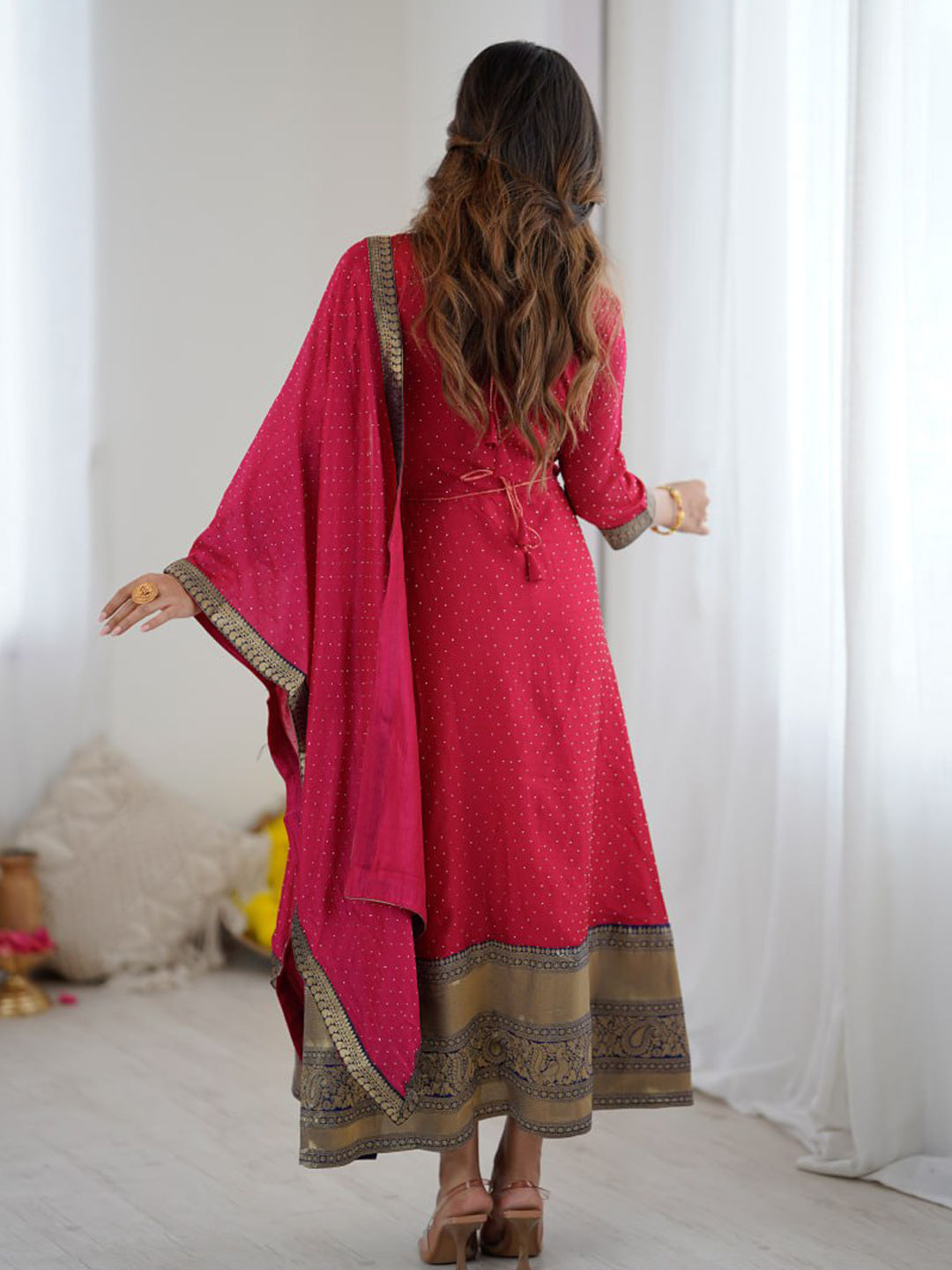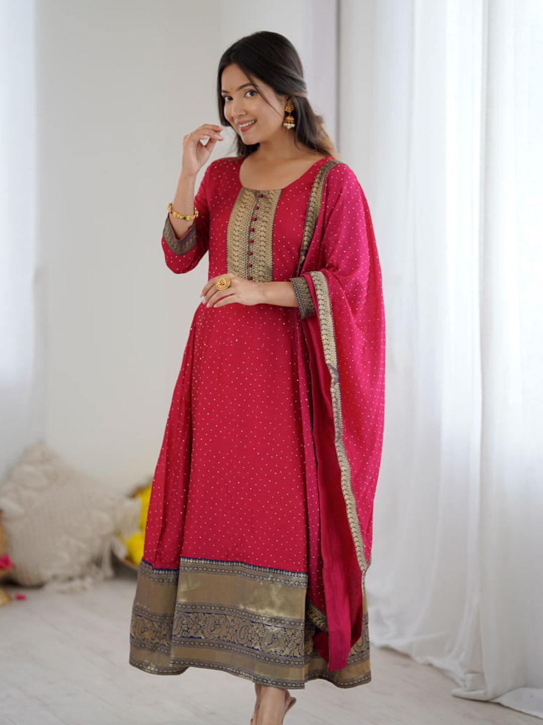 Pink and Majenta color Salwar Kameez in Silk fabric with Border work