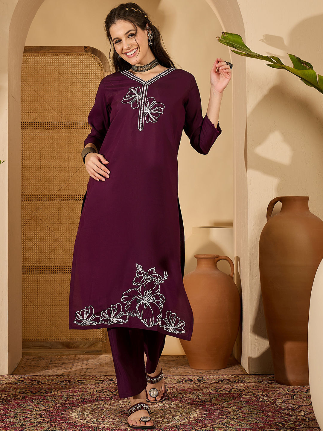 Purple and Violet color Salwar Kameez in Silk fabric with Embroidered work