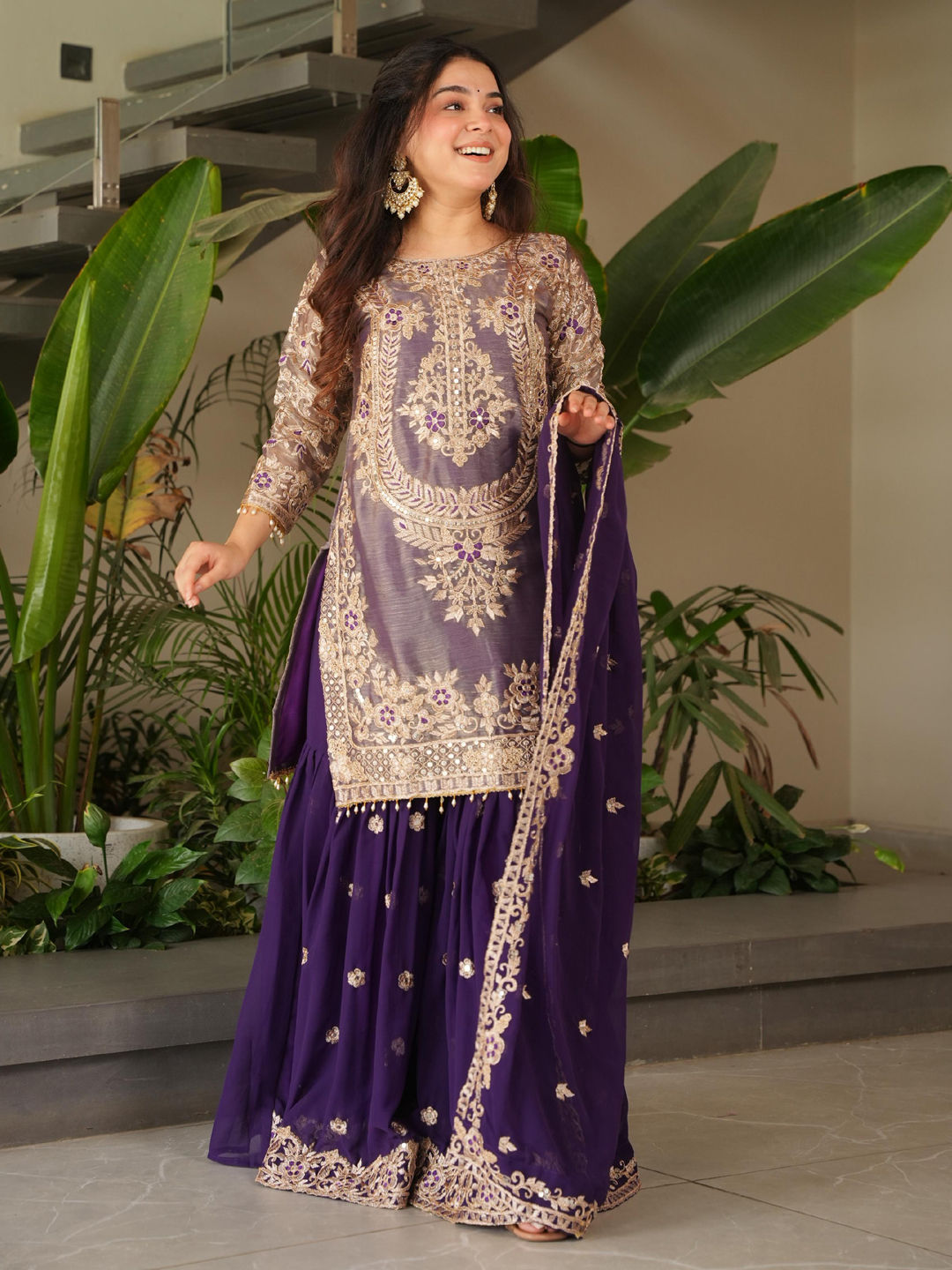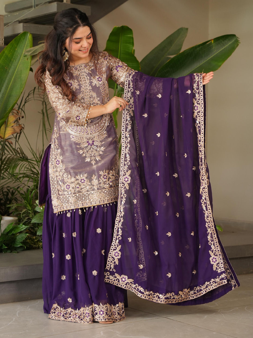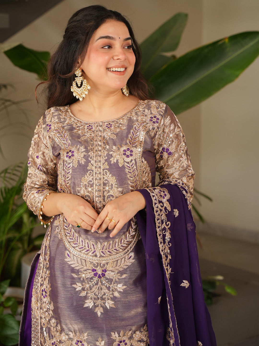 Purple and Violet color Salwar Kameez in Silk fabric with Embroidered, Sequence work