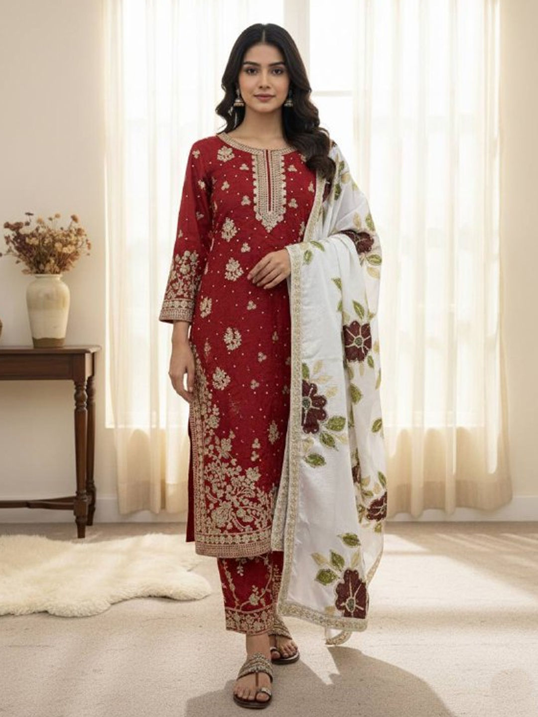 in Red and Maroon with Thread work
