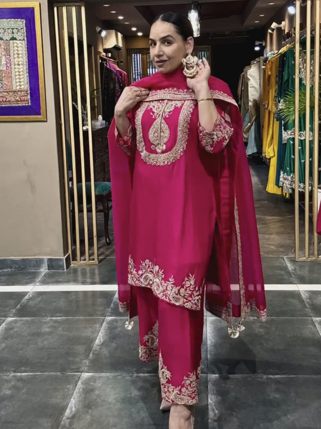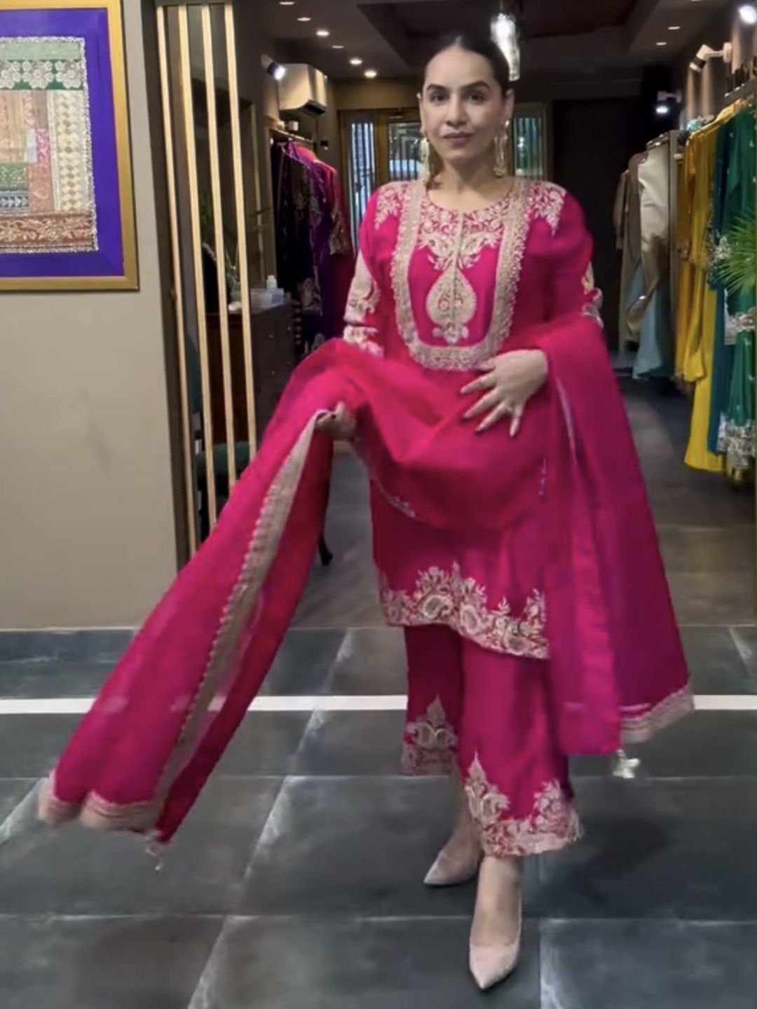 Red and Maroon color Salwar Kameez in Silk fabric with Embroidered, Sequence, Zari work