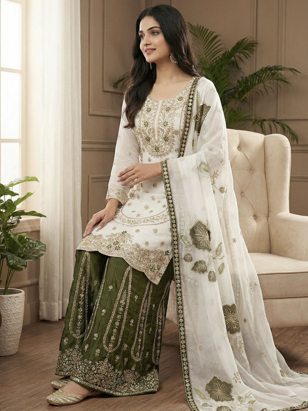 in White and Off White with Thread work
